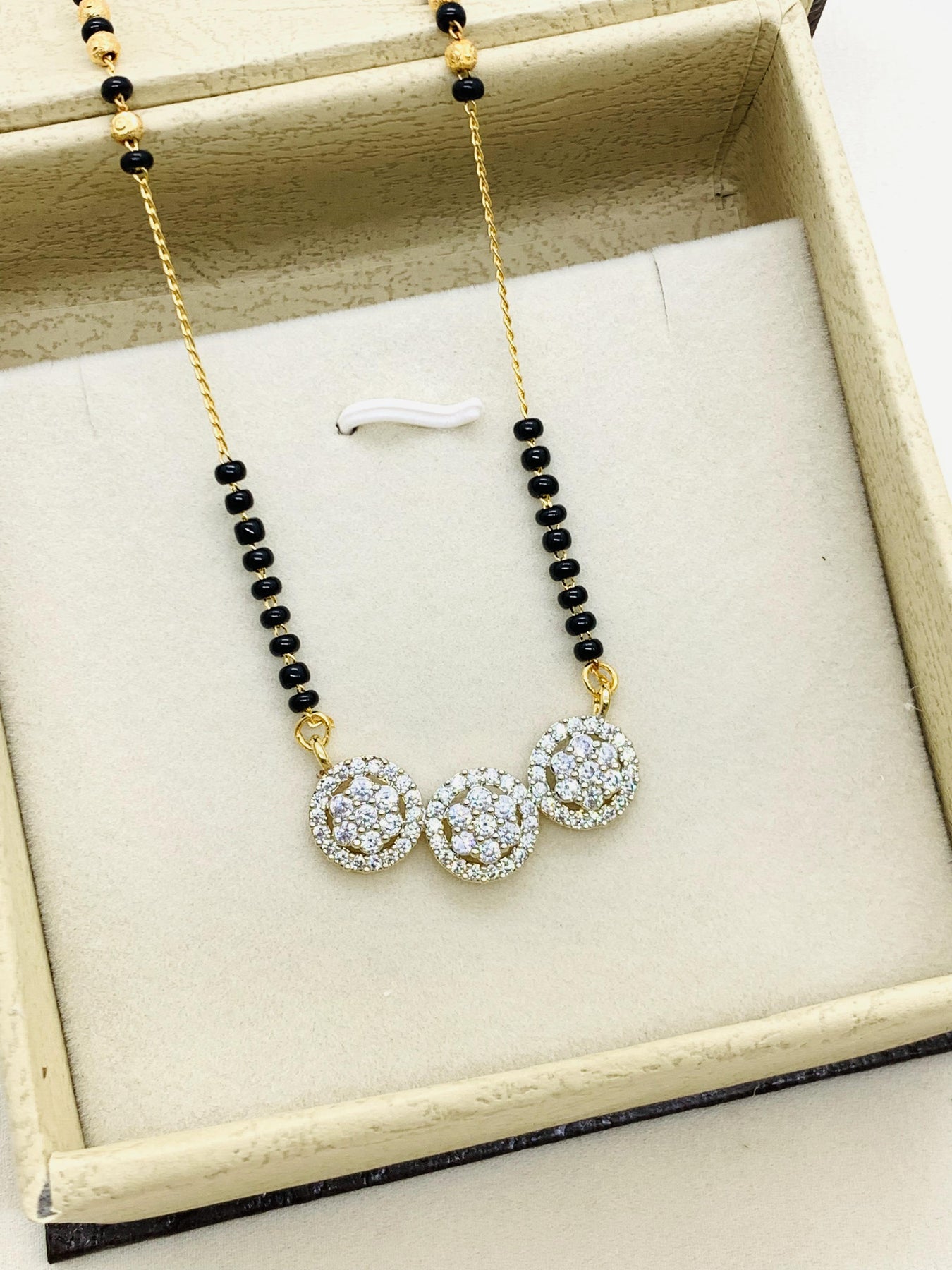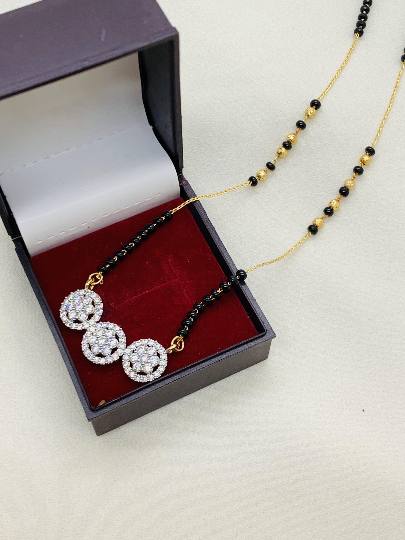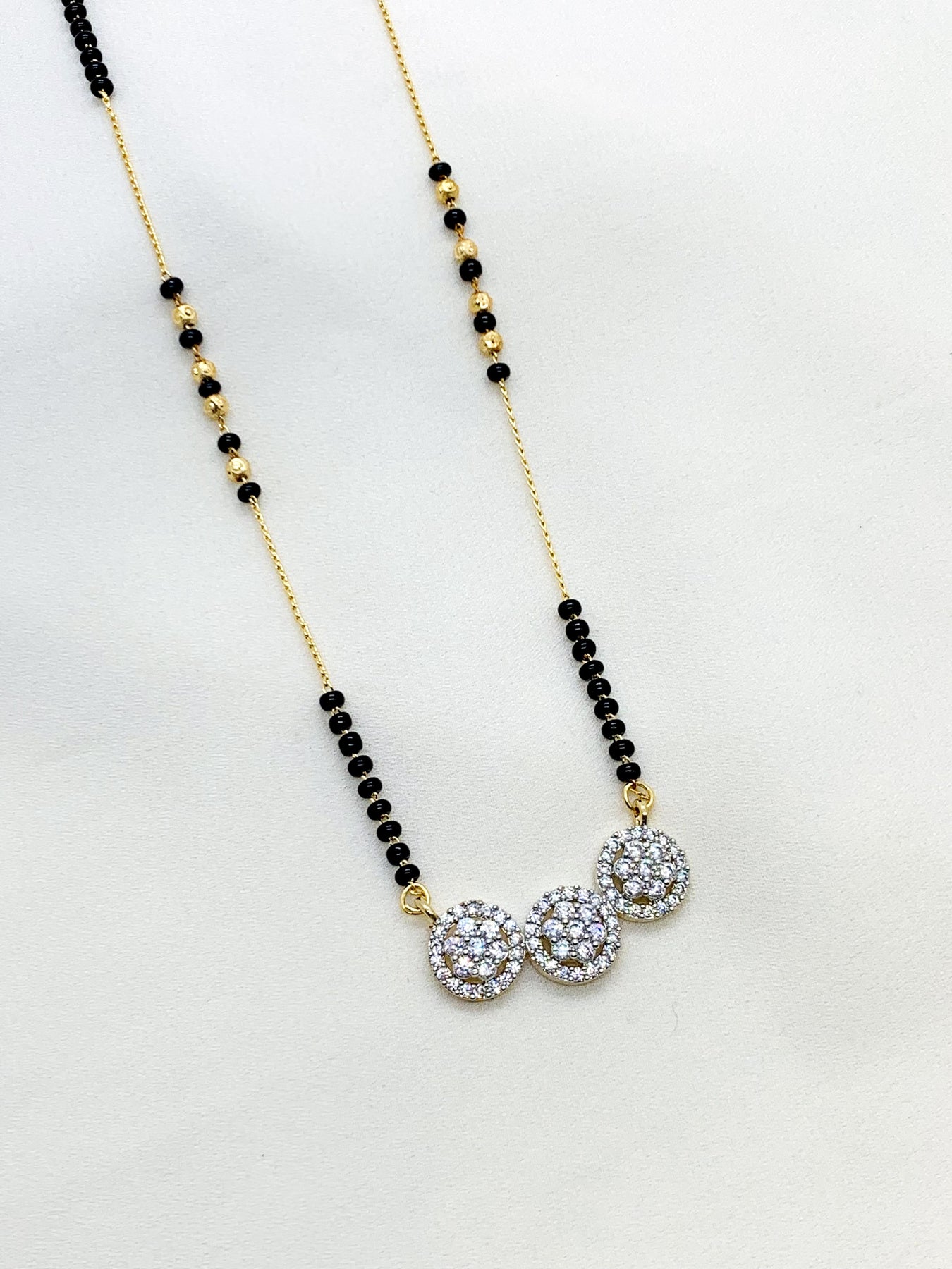 This Exquisite Mangalsutra Is A Perfect Blend Of Tradition And Modern Elegance. Designed For The Modern Indian Woman, It Features A Delicate Gold-Plated Chain Adorned With Classic Black Beads, A Cultural Symbol Of Love, Prosperity, And Marital Bliss. The Black Beads Are Spaced Evenly Along The Chain, Interspersed With Small Gold Accents For A Refined Touch.