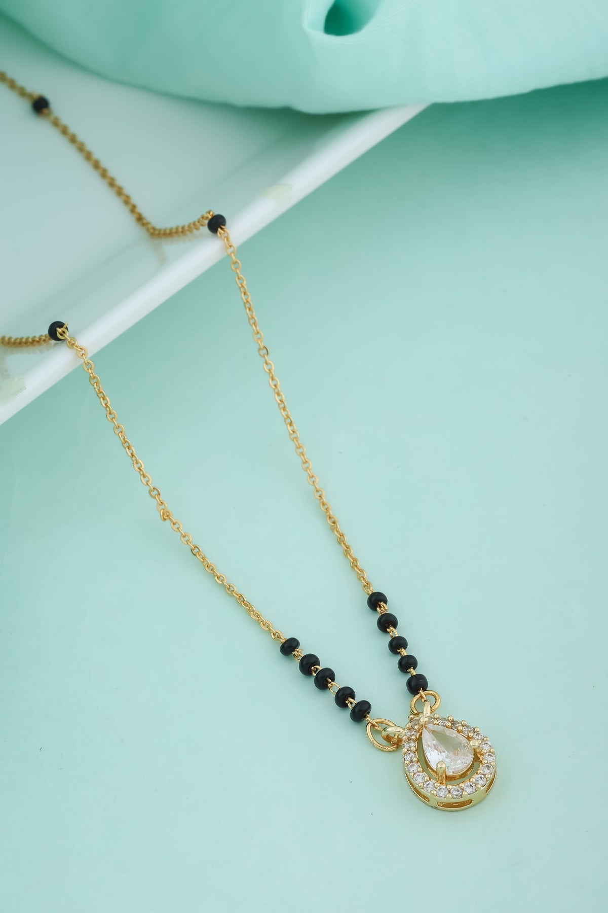 Women's Black Beaded American Diamond Short Mangalsutra