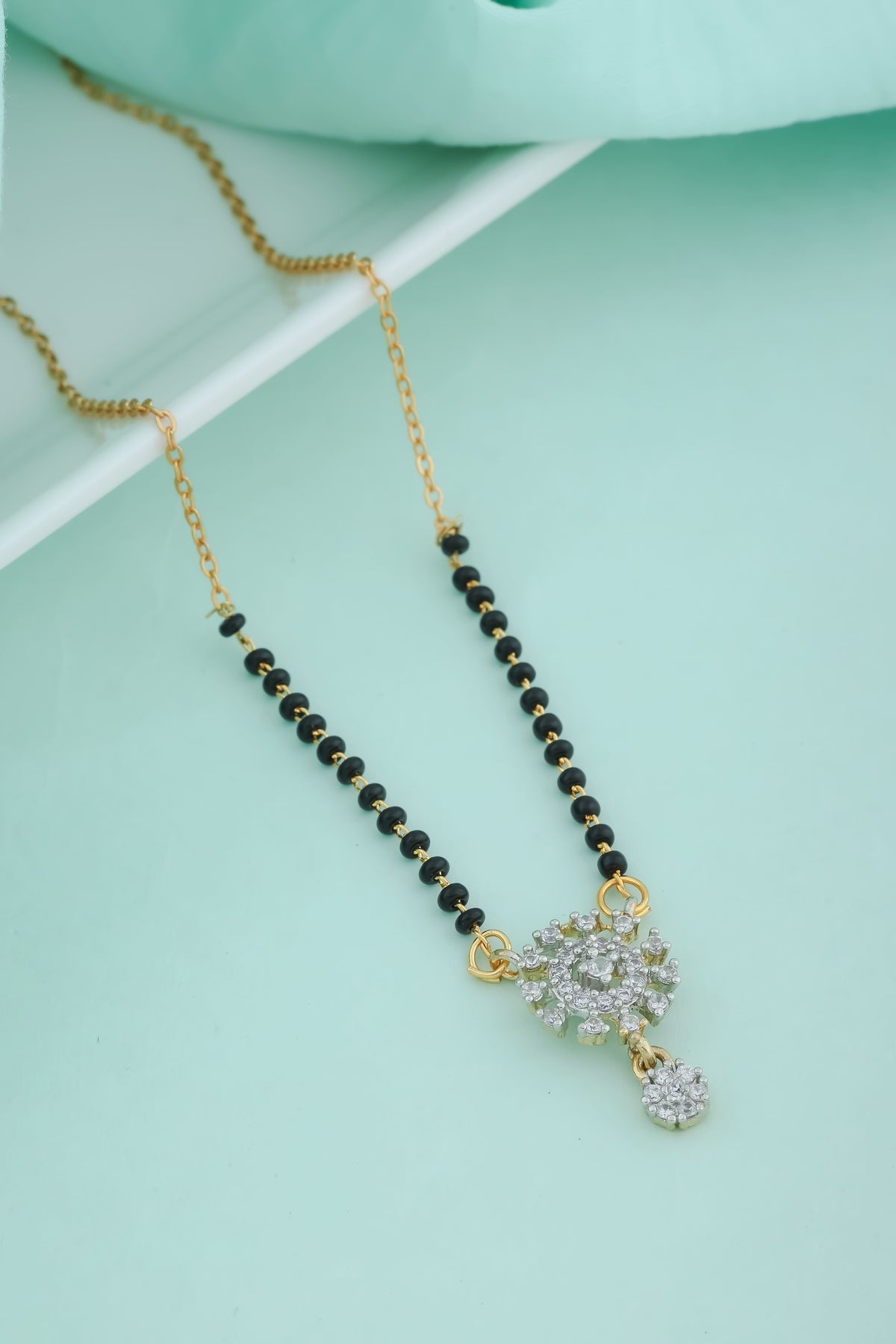 Women's Black Beaded American Diamond Short Mangalsutra