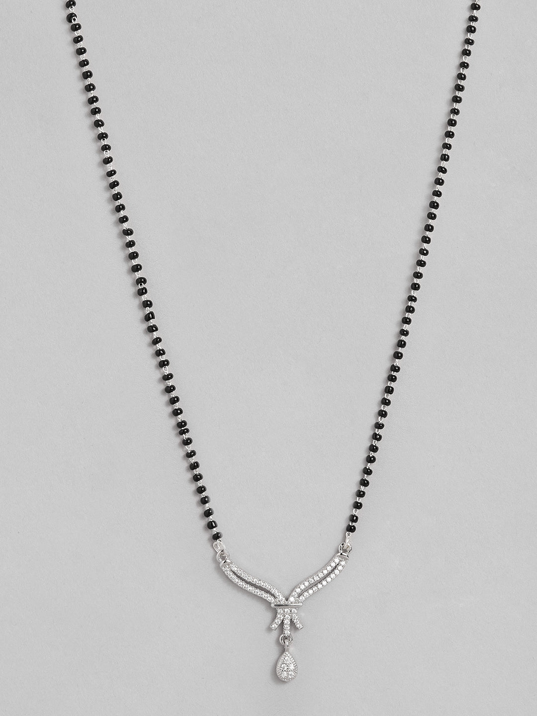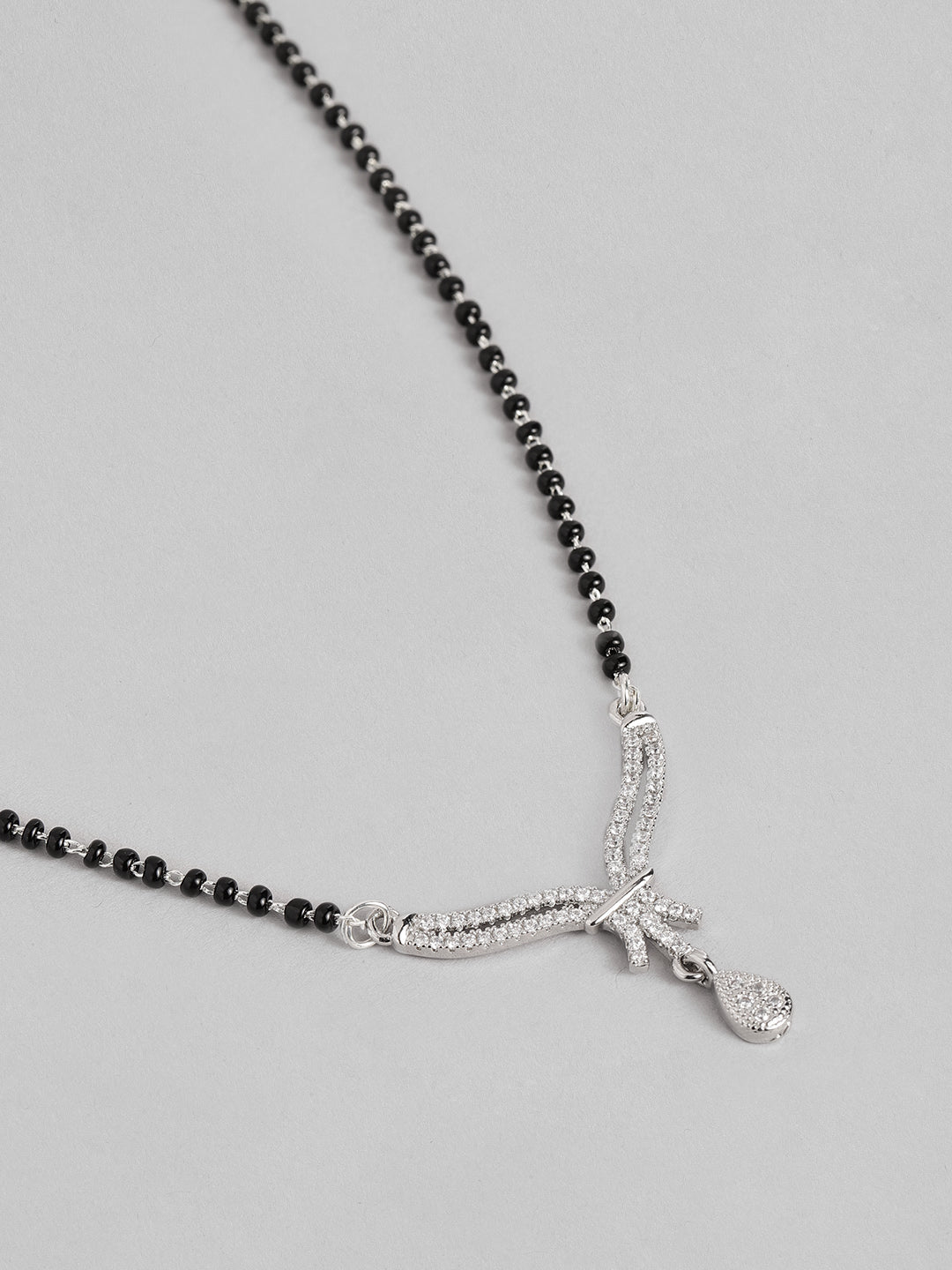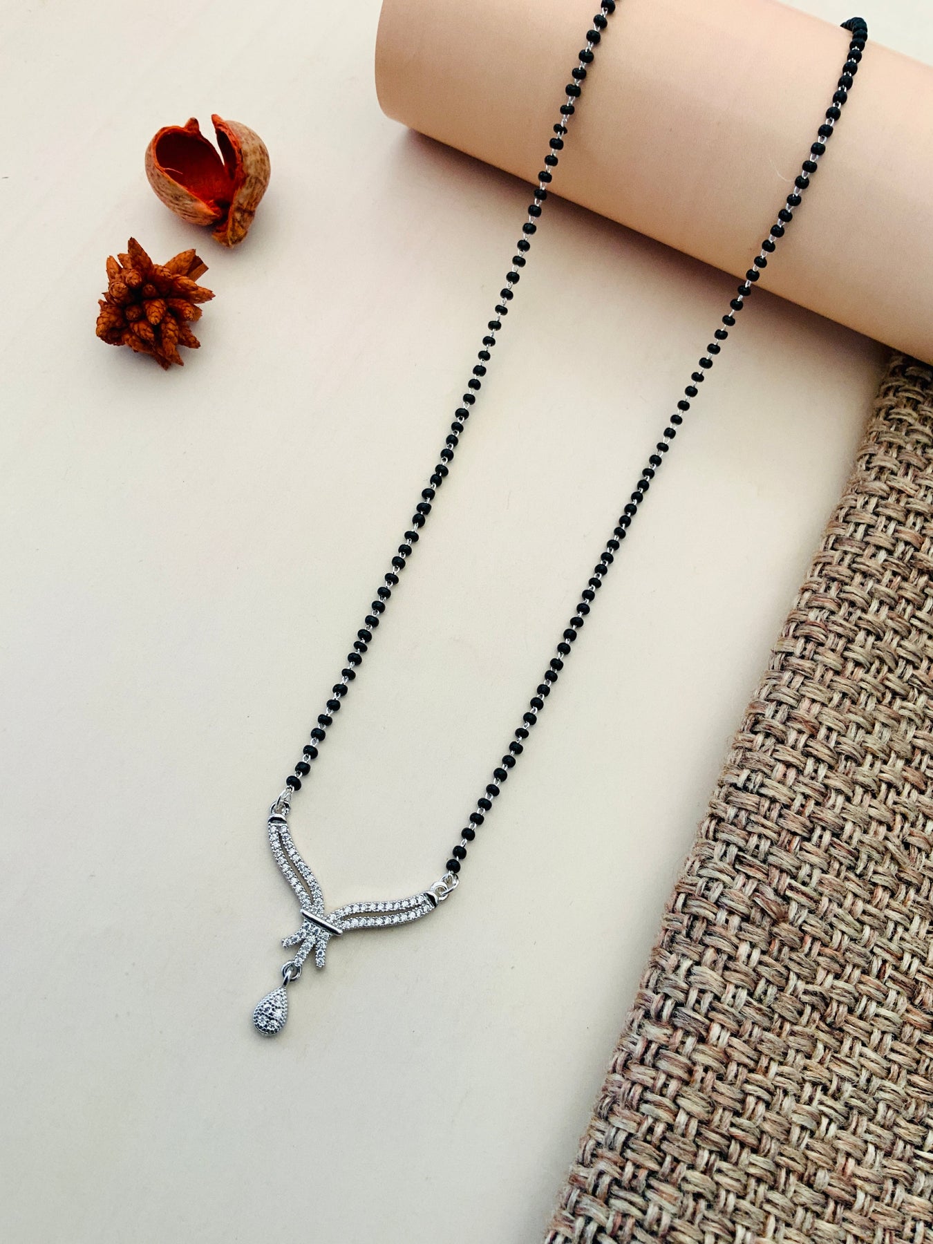 Women's Silver Plated American Diamond & Black Beaded Mangalsutra
