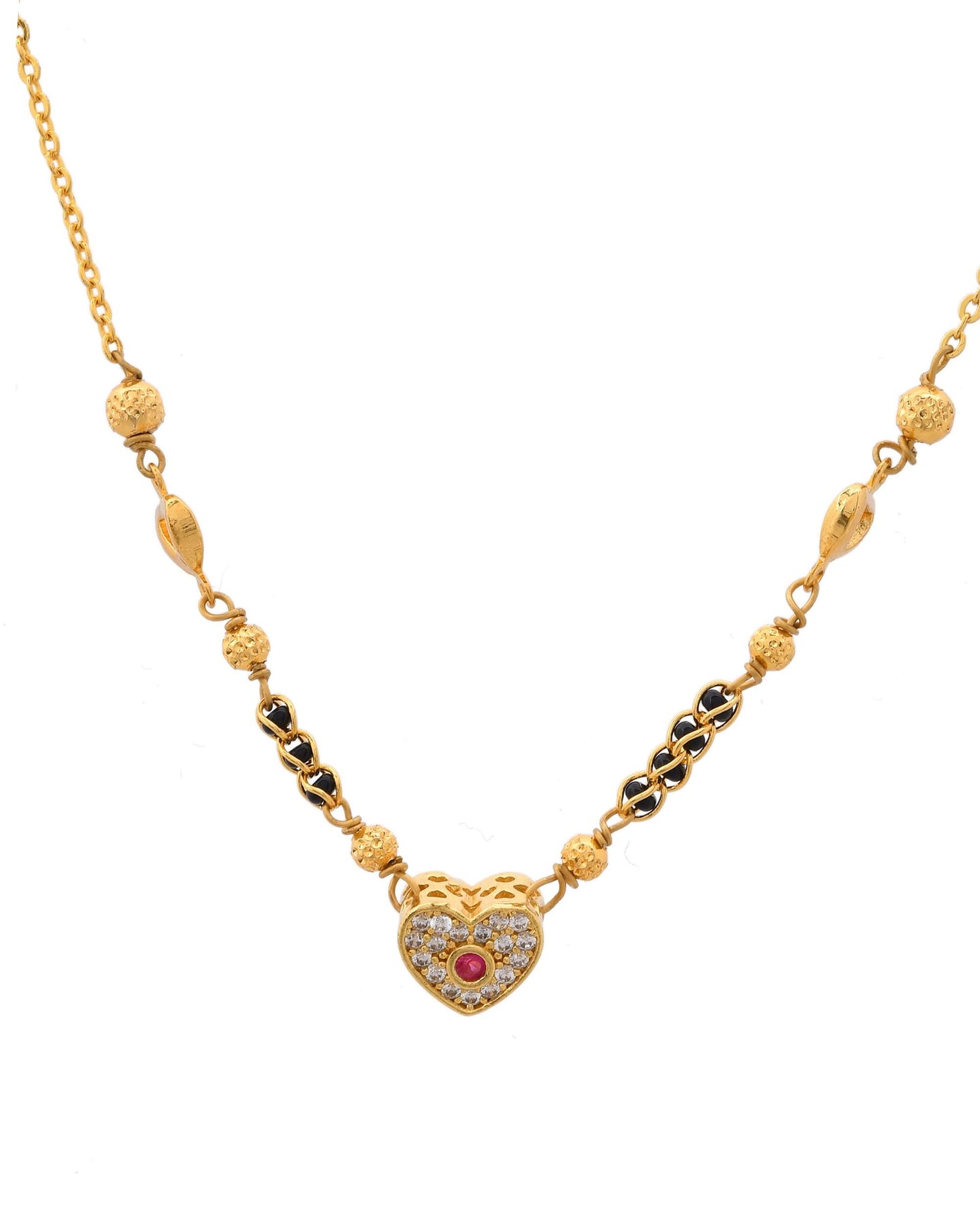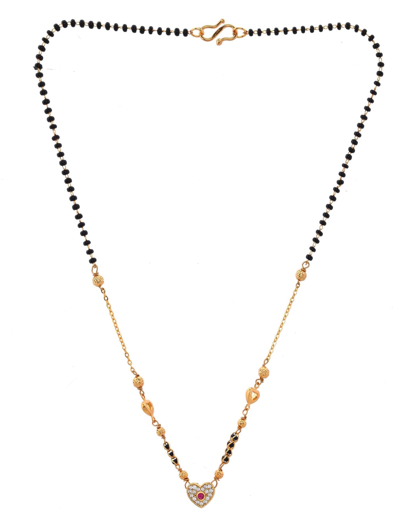 The Gold Plated Ad Studded Heart-Shaped Mangalsutra Combines Love And Elegance In One Stunning Design. Featuring A Beautiful Heart-Shaped Pendant Adorned With Dazzling Ad Stones, This Piece Exudes Sophistication And Charm. The Gold-Plated Chain Adds A Timeless Touch, Making It Perfect For Daily Wear Or Special Occasions. A Symbol Of Love And Commitment, This Mangalsutra Is A Must-Have For Every Woman.