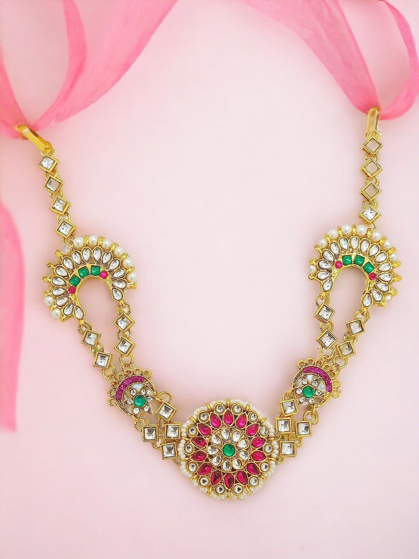 Embrace The Heritage And Opulence Of Rajasthan With Our Kundan Pearl And Multicolored Stones Mathapatti , A Timeless Masterpiece That Transcends Trends And Celebrates The Grandeur Of Indian Craftsmanship.Adorned With Lustrous Pearls And Kundan , The Design Exudes A Sense Of Opulence And Grace, Reminiscent Of The Majestic Adornments Worn By Rajput Queens Of Yore.