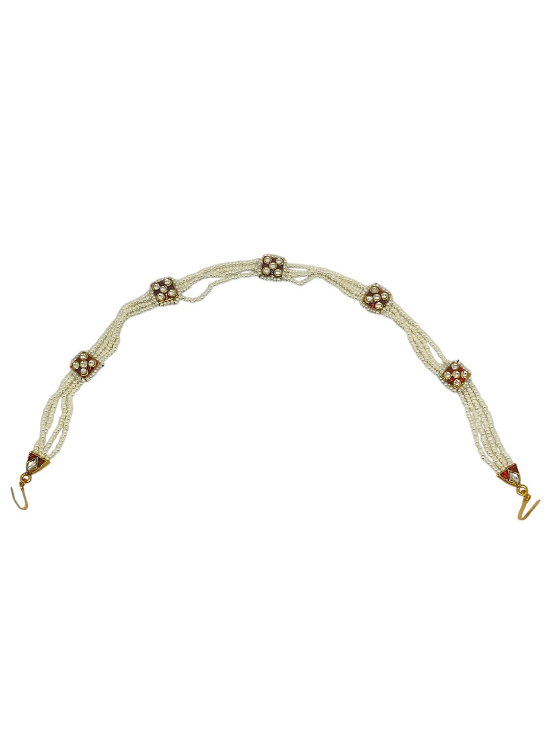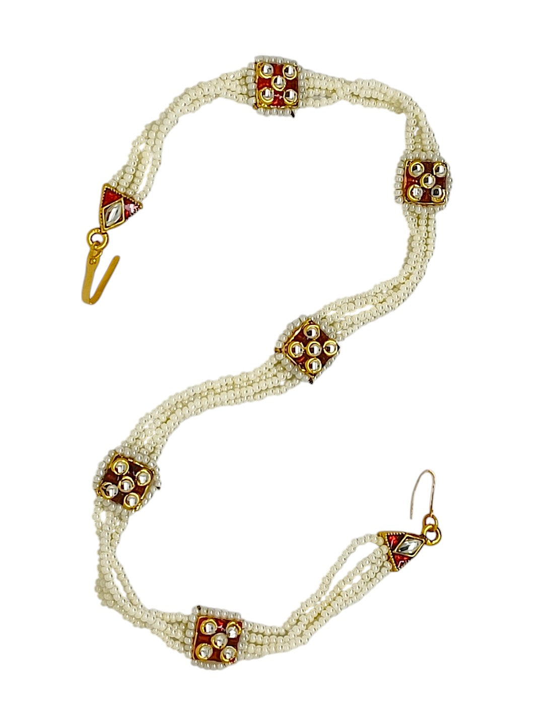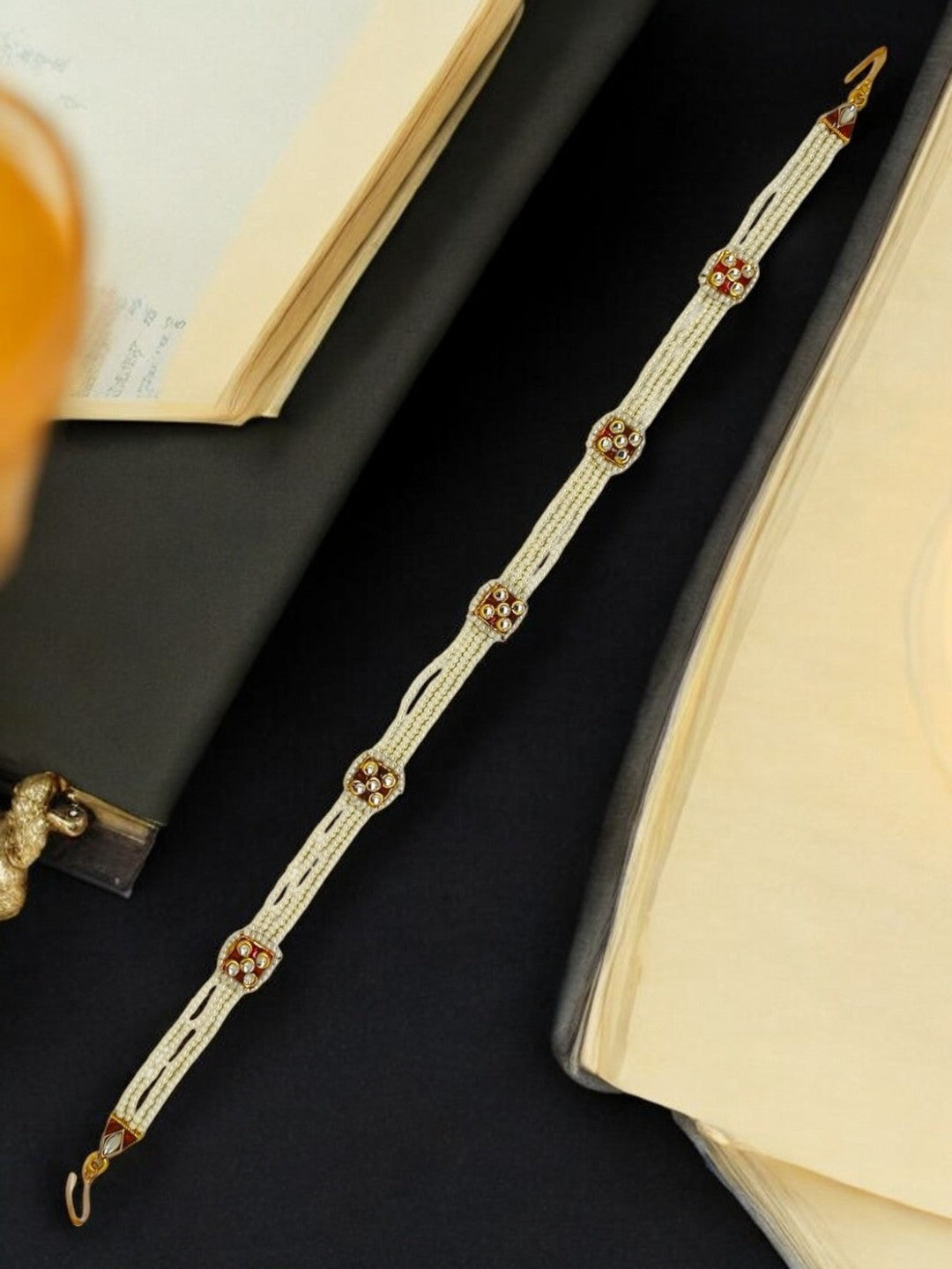 Gold-Toned Artificial Kundan And Beads-Studded Matha Patti. Secured With Hook Closure
