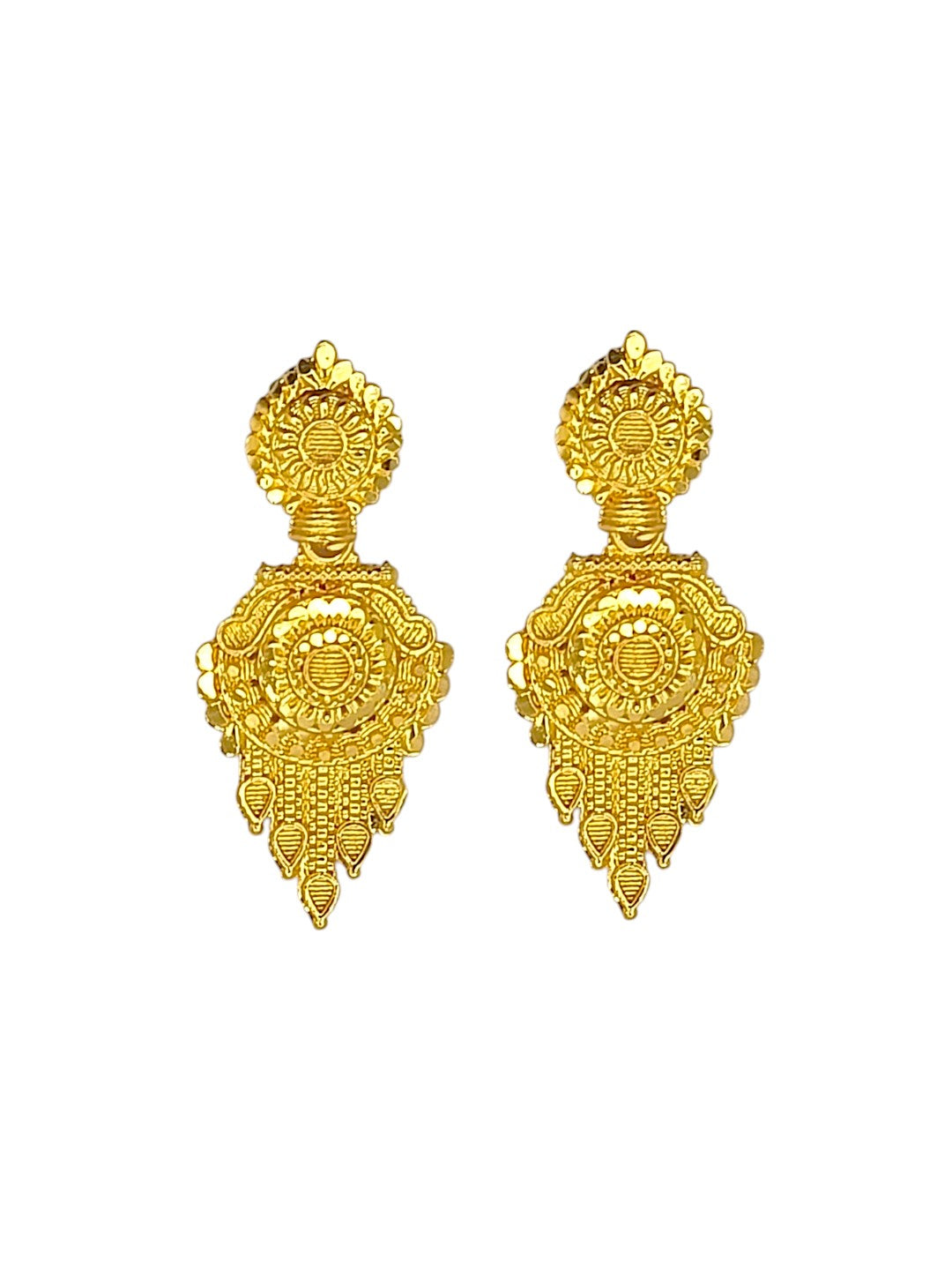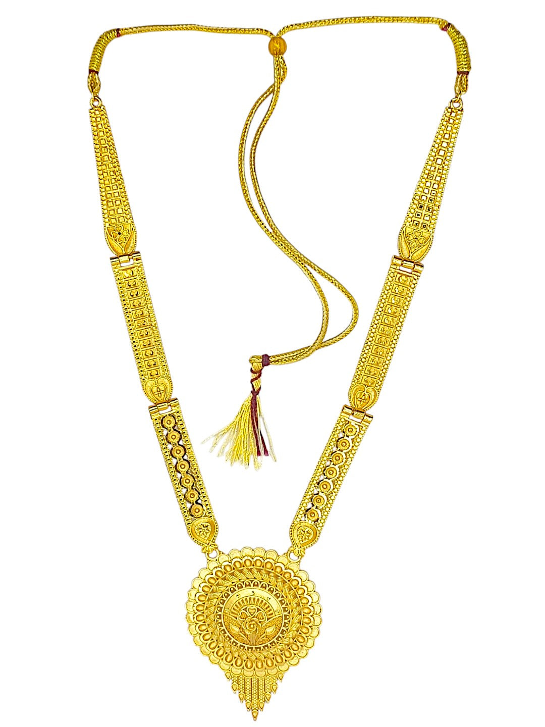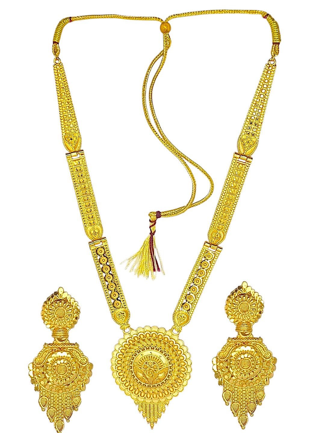 Gold-Toned Round Shape Handcrafted Long Haaram Necklaces Set. Secured With A Drawstring Closure. A Pair Of Matching Earrings, Each Secured With A Post And Back Closure.