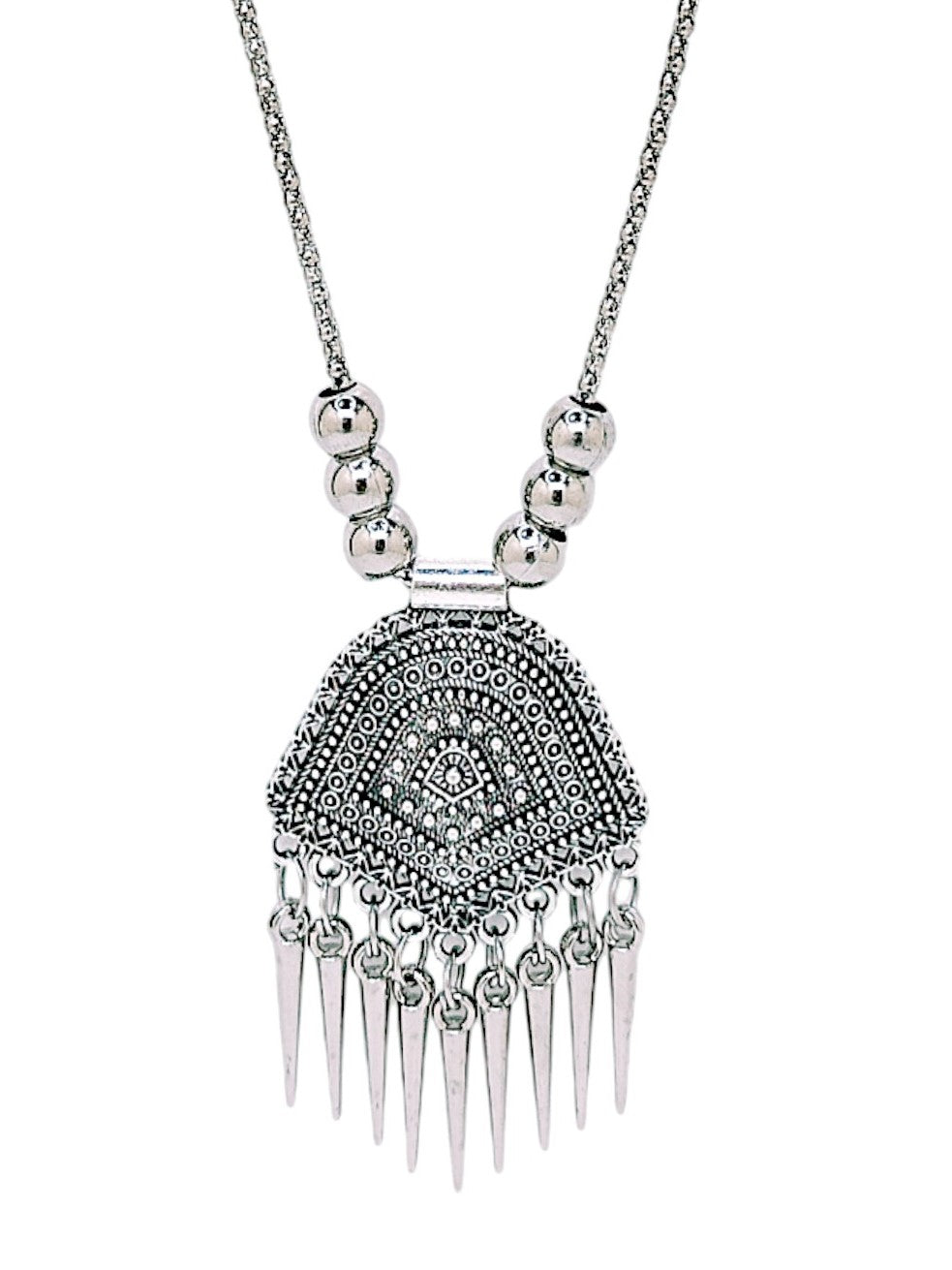 Silver-Toned Cmips Long Necklace, Secured With S-Hook Closure. A Matching Earring Secured With Fish Closure