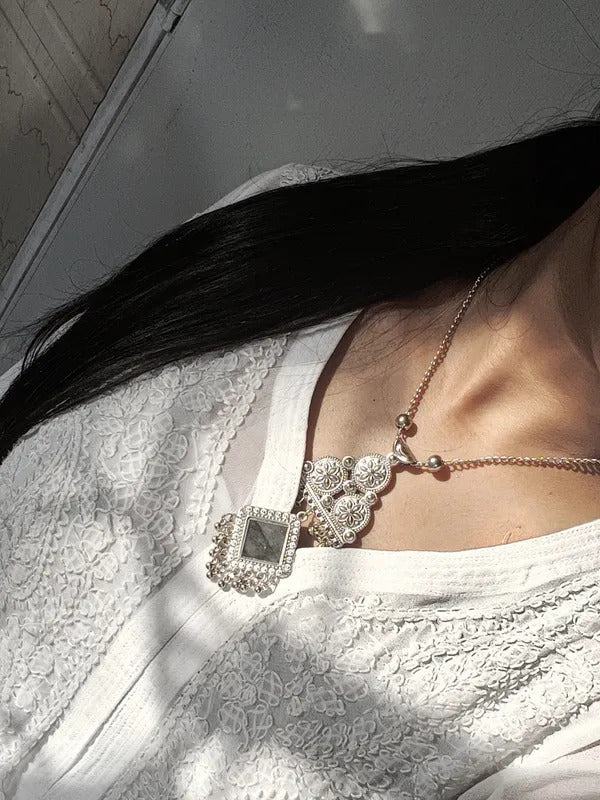 Silvertoned Oxidised Double Pendant Necklace. Secured With S-Hook Closure