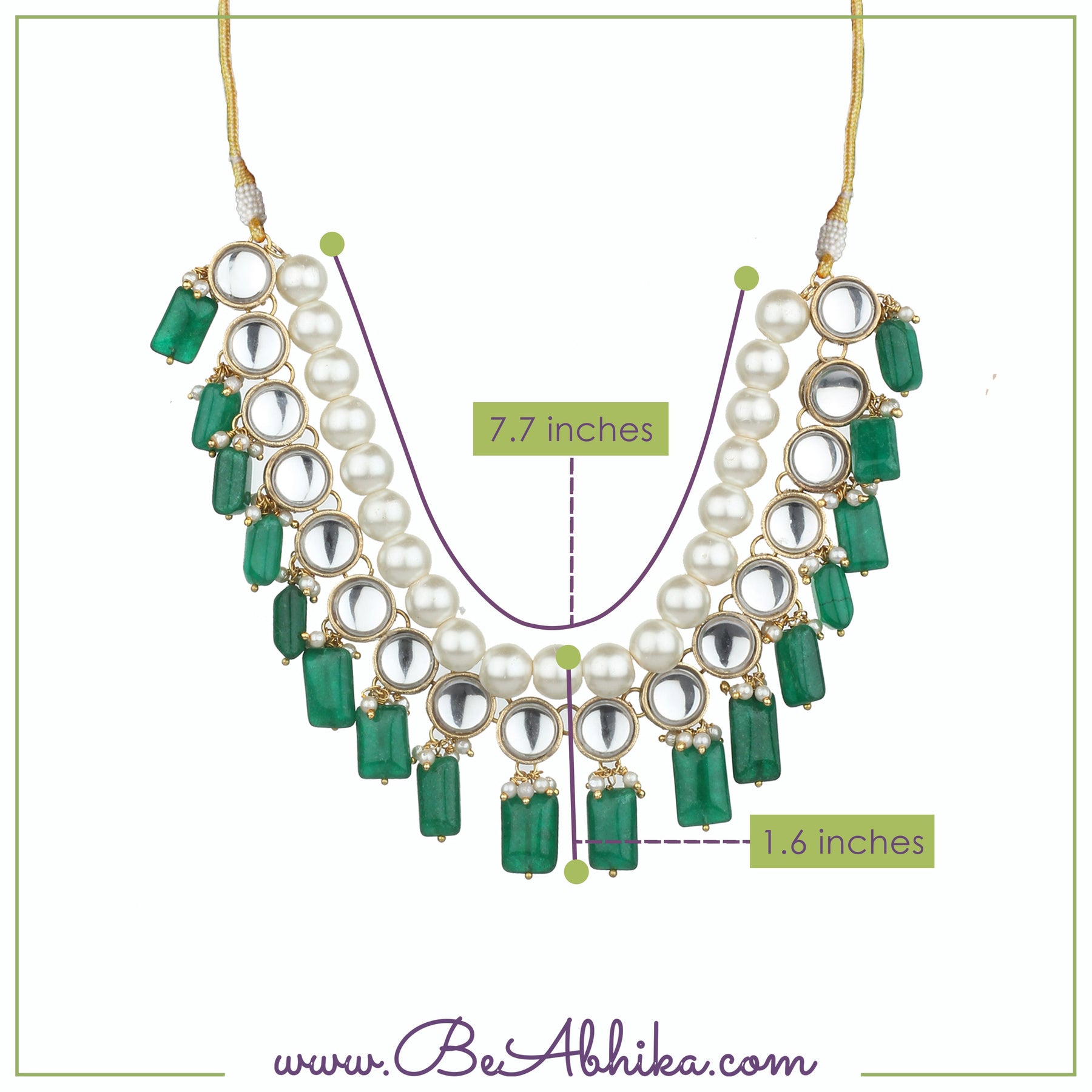 This Necklace With Contemporary Styling Of Traditional Elements Like Kundans, Pearls And Semi Precious Stones Will Look Absolutely Stunning With Any Kind Of Outfit/Color. If You Want Something Exquisite And Contemporary But Also Want To Keep The Traditional Feel Alive, Choose This Pair Of Kundan And Stone Necklace.