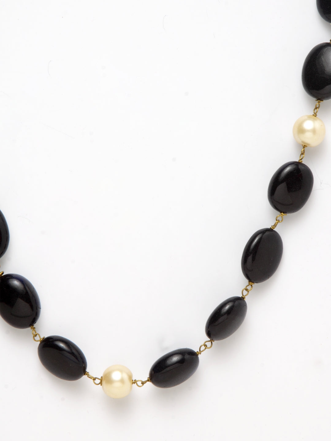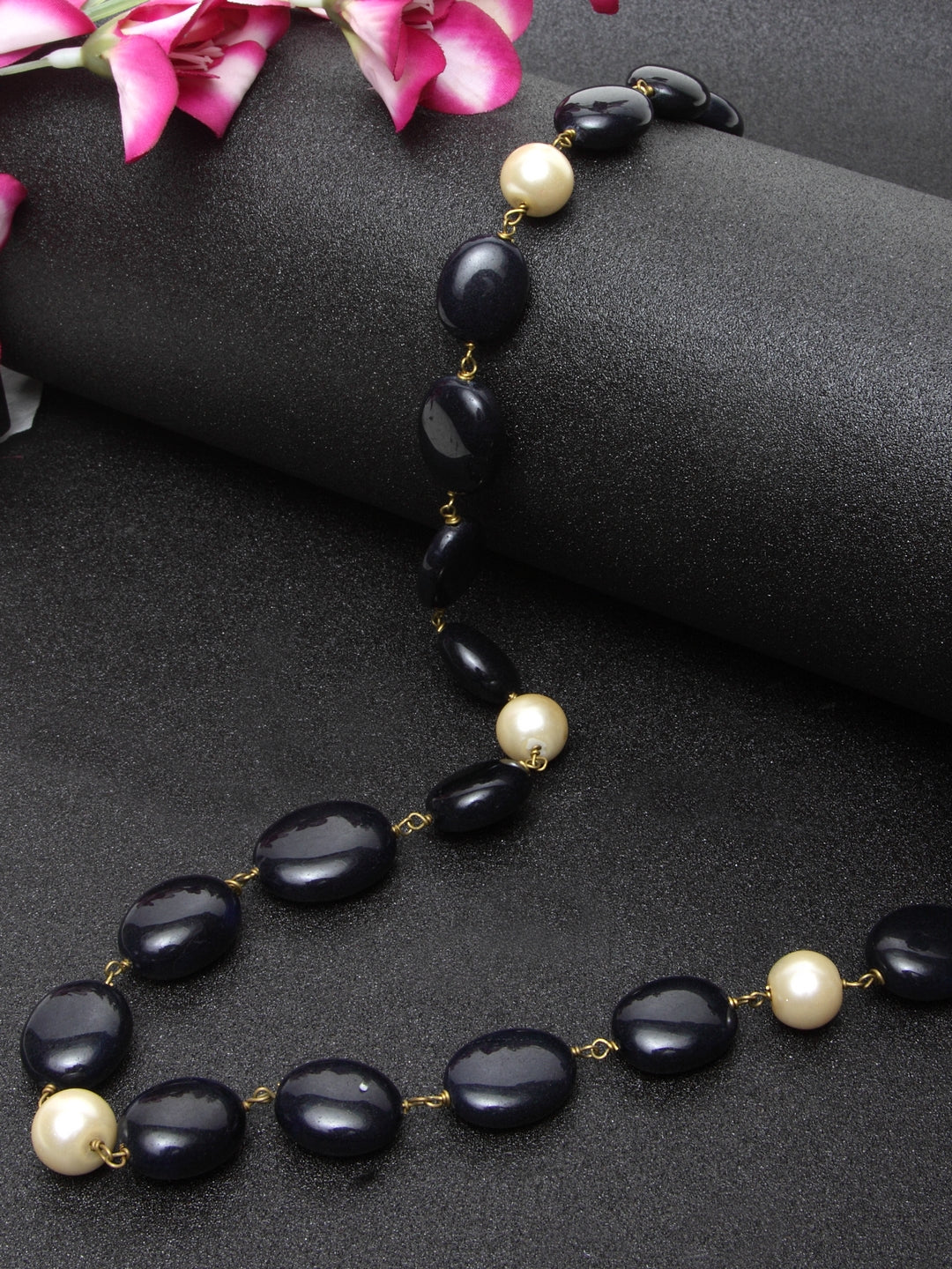 Blue & Haar Necklace With Pearls &; Category Of Jewellery Is Necklace; Sub Category Is Haar; Ideal For Women; Base Color Is Blue; Gemstones Used - Pearls; Plating Is Gold-Plated; Base Metal Is Alloy; Other Material Used - ; Size Is Freesize; Adjustable - No; Weight Is 145 Gms; Mesaurements - Length Of Necklace =81 Cm; Width Of Necklace = 0.5 Cm; Content