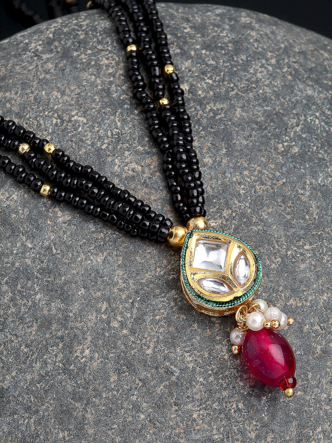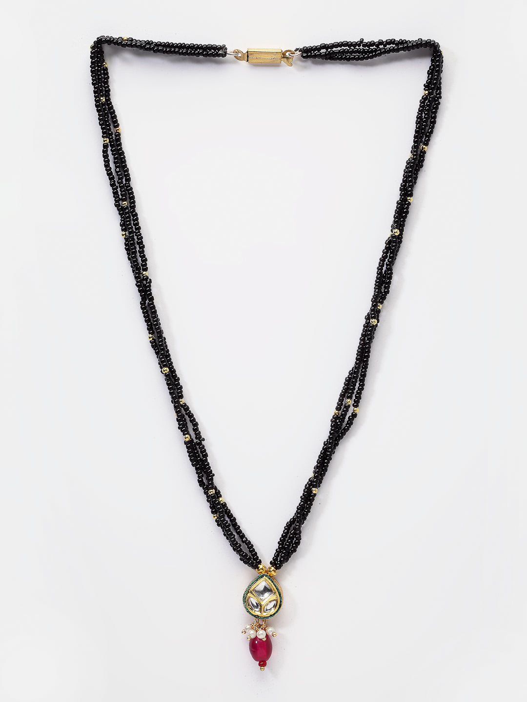 Make This Handmade Jewel Pc Part Of Your Everyday Jewellery By Styling To Any Evening Walk Or Get Together With Friends. Make Your Simple Outfit Extraoridnary With The Smile Our Jewellery.; Category Of Jewellery Is Necklace; Sub Category Is Haar; Ideal For Women; Color Is Black, Green, White, Gold, Red; Gemstones Used - Kundan, Pearls, Natural Stones, Faux Emerald, Faux Ruby; Plating Is Gold-Plated; Base Metal Is Alloy; Other Material Used - None; Size Is Freesize; Adjustable - No; Weight Is 17 Gms; Mesaurements - Length Of Necklace =52.5 Cm; Width Of Necklace = 3.5 Cm; Adjustable - No; Content 1 Necklace