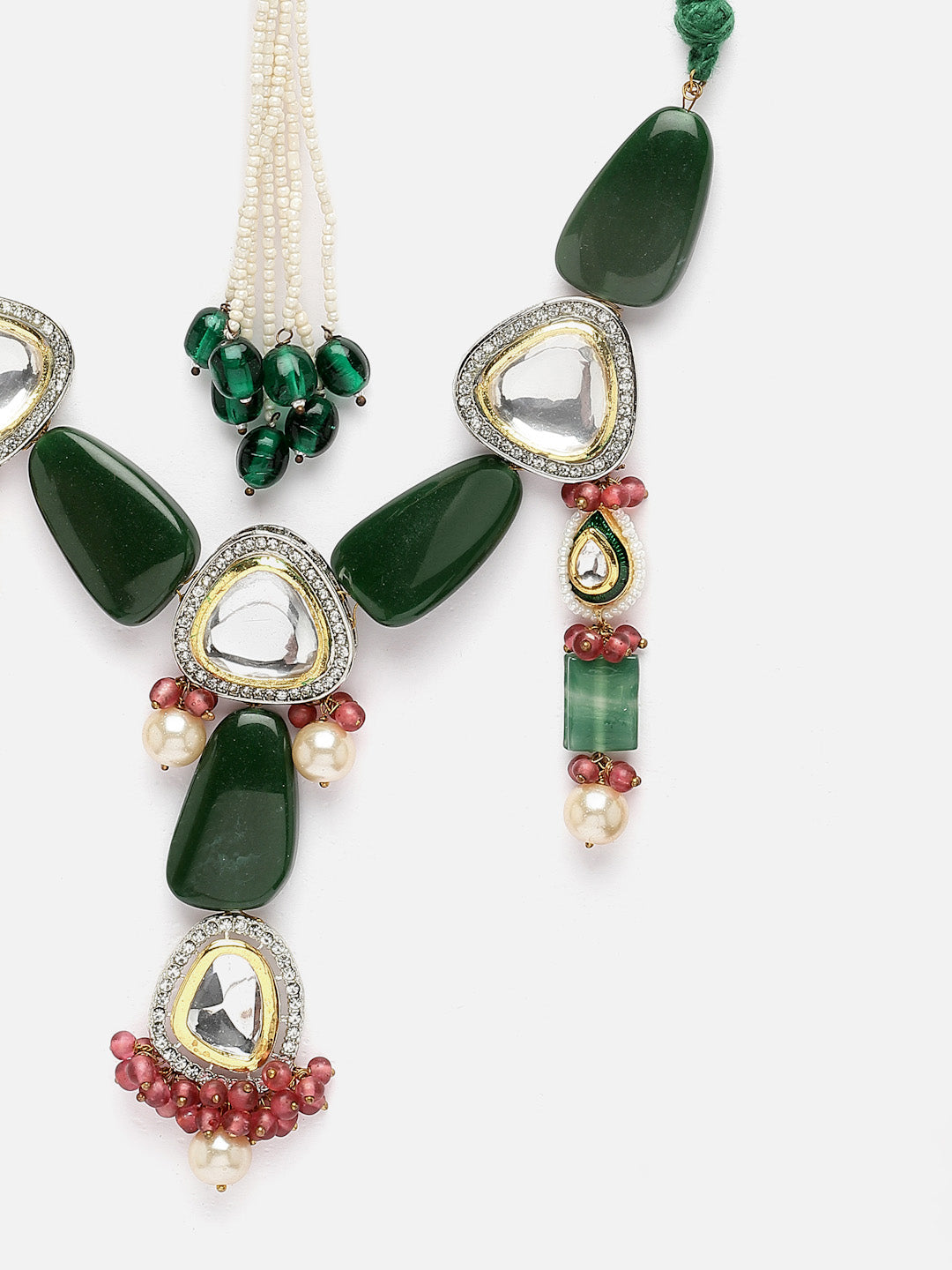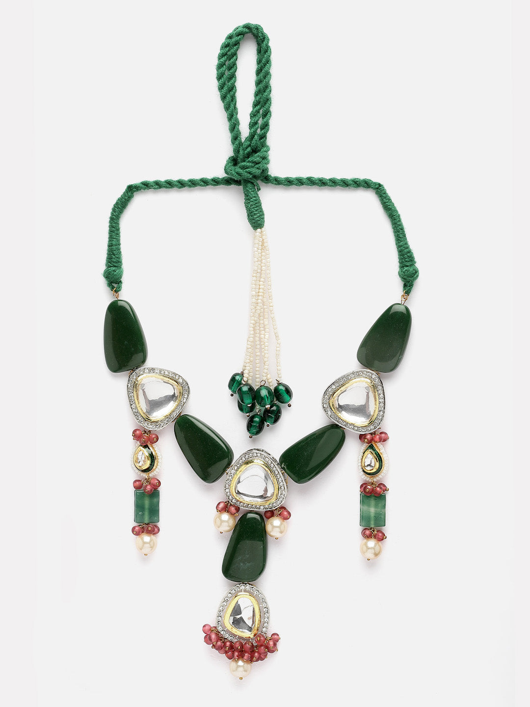 Styled In Handmade Dori Pink And Blue Sapphire Peacock And Pearl Tassels Neck Pc; Category Of Jewellery Is Necklace; Sub Category Is Haar; Ideal For Women; Color Is Pink, Green, Blue, Cream, White, Gold; Gemstones Used - Kundan, American Diamonds, Pearls, Natural Stones ; Plating Is Gold-Plated; Base Metal Is Alloy; Other Material Used - Adjustable Dori; Size Is Freesize; Adjustable - Yes ; Weight Is 76 Gms; Mesaurements - Length Of Necklace =60 Cm; Width Of Necklace = 2 Cm; Adjustable - Yes ; Content 1 Necklace