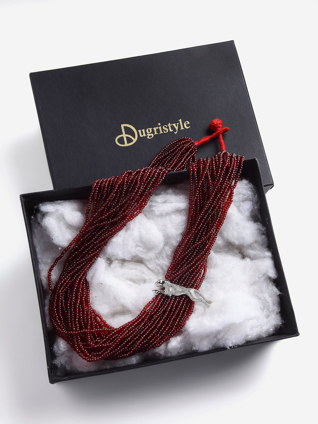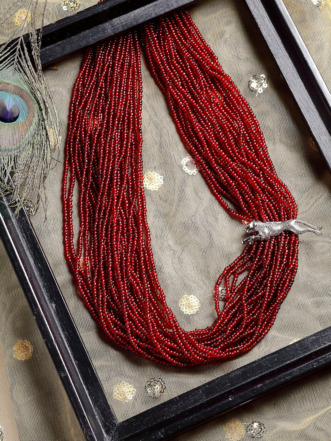 Red & Silver Layered Necklace With Natural Stones & Faux Ruby; Category Of Jewellery Is Necklace; Sub Category Is Layered; Ideal For Women; Color Is Red, Silver; Gemstones Used - Natural Stones, Faux Ruby; Plating Is Silver-Plated; Base Metal Is Alloy; Other Material Used - None; Size Is Freesize; Adjustable - No; Weight Is 212 Gms; Mesaurements - Length Of Necklace =66 Cm; Width Of Necklace = 5 Cm; Adjustable - No; Content 1 Necklace