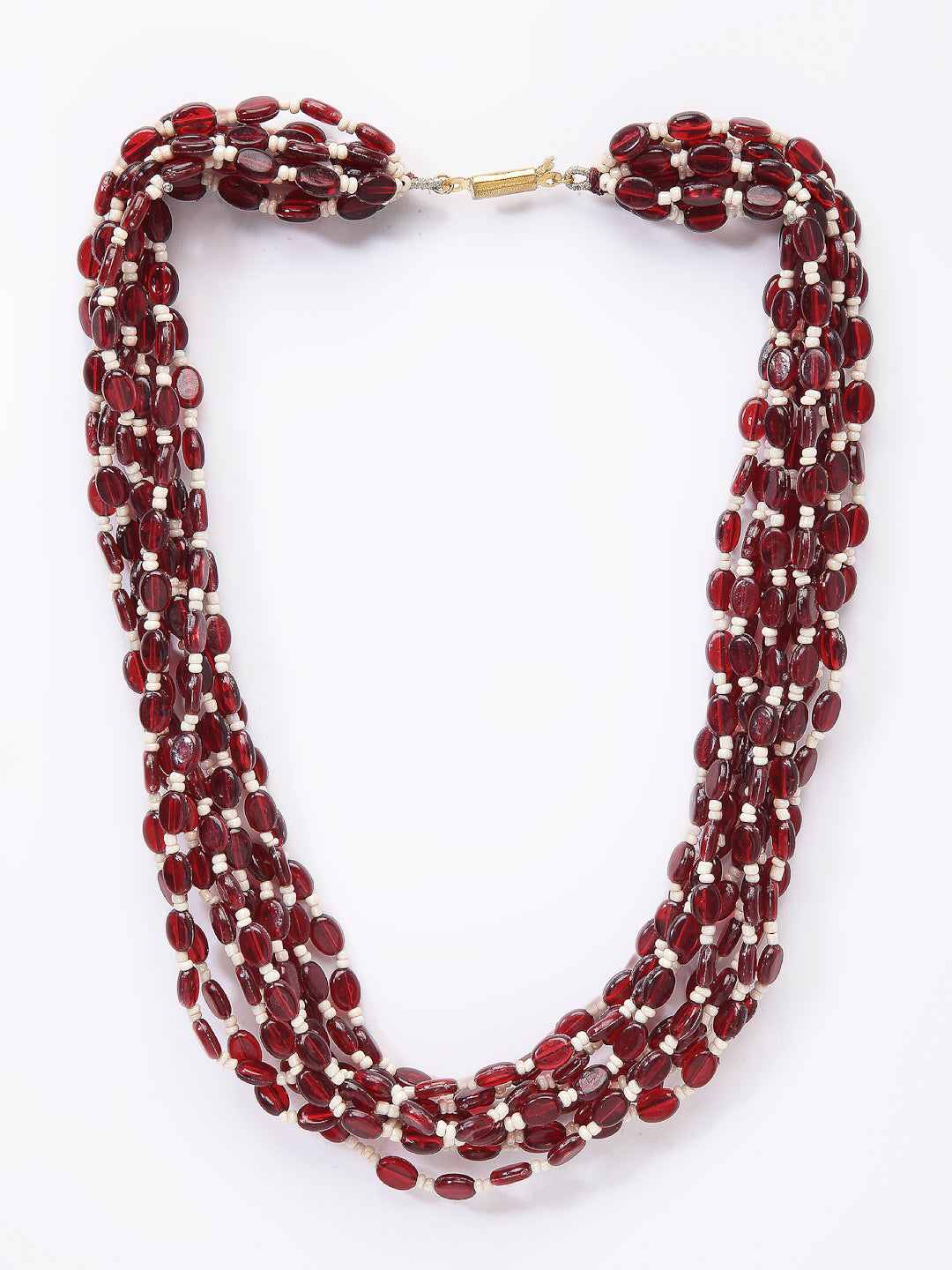 Pink And White Handmade Necklace Is All You Need Is To Style With Any Of Your Tunic Or Saree Or Any Outfit, Let Your Smile And Pearl Do Its Magic To Make U Smile And Shine Always.; Category Of Jewellery Is Necklace; Sub Category Is Layered; Ideal For Women; Color Is Red, White, Gold; Gemstones Used - Pearls, Natural Stones; Plating Is Gold-Plated; Base Metal Is Alloy; Other Material Used - None; Size Is Freesize; Adjustable - No; Weight Is 56 Gms; Mesaurements - Length Of Necklace =52.5 Cm; Width Of Necklace = 2.5 Cm; Adjustable - No; Content 1 Necklace