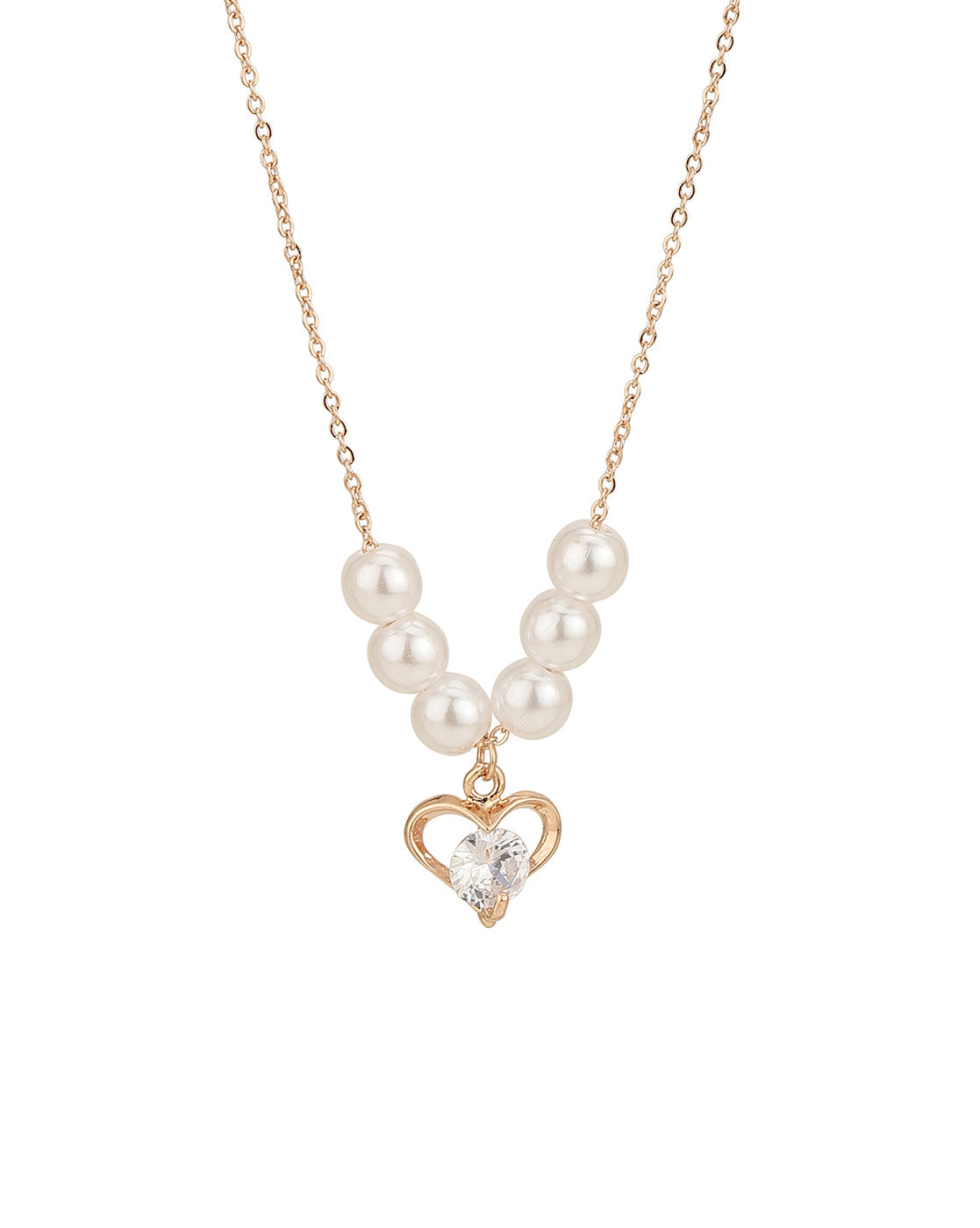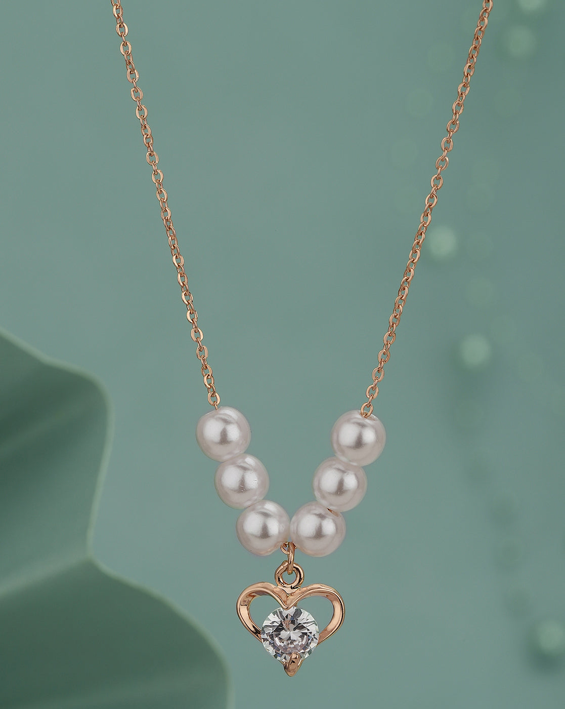Rose Gold Plated Pearl With Heart Necklace For Women