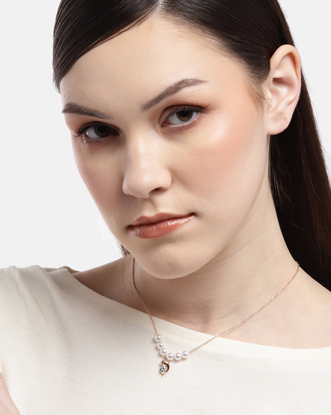 Rose Godl Plated Pearl With Dolphin Necklace For Women