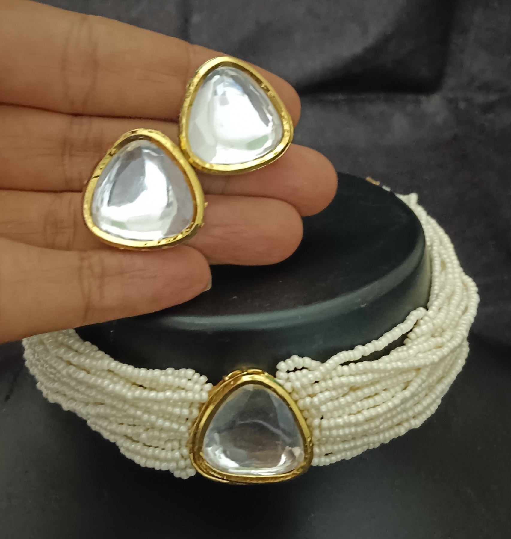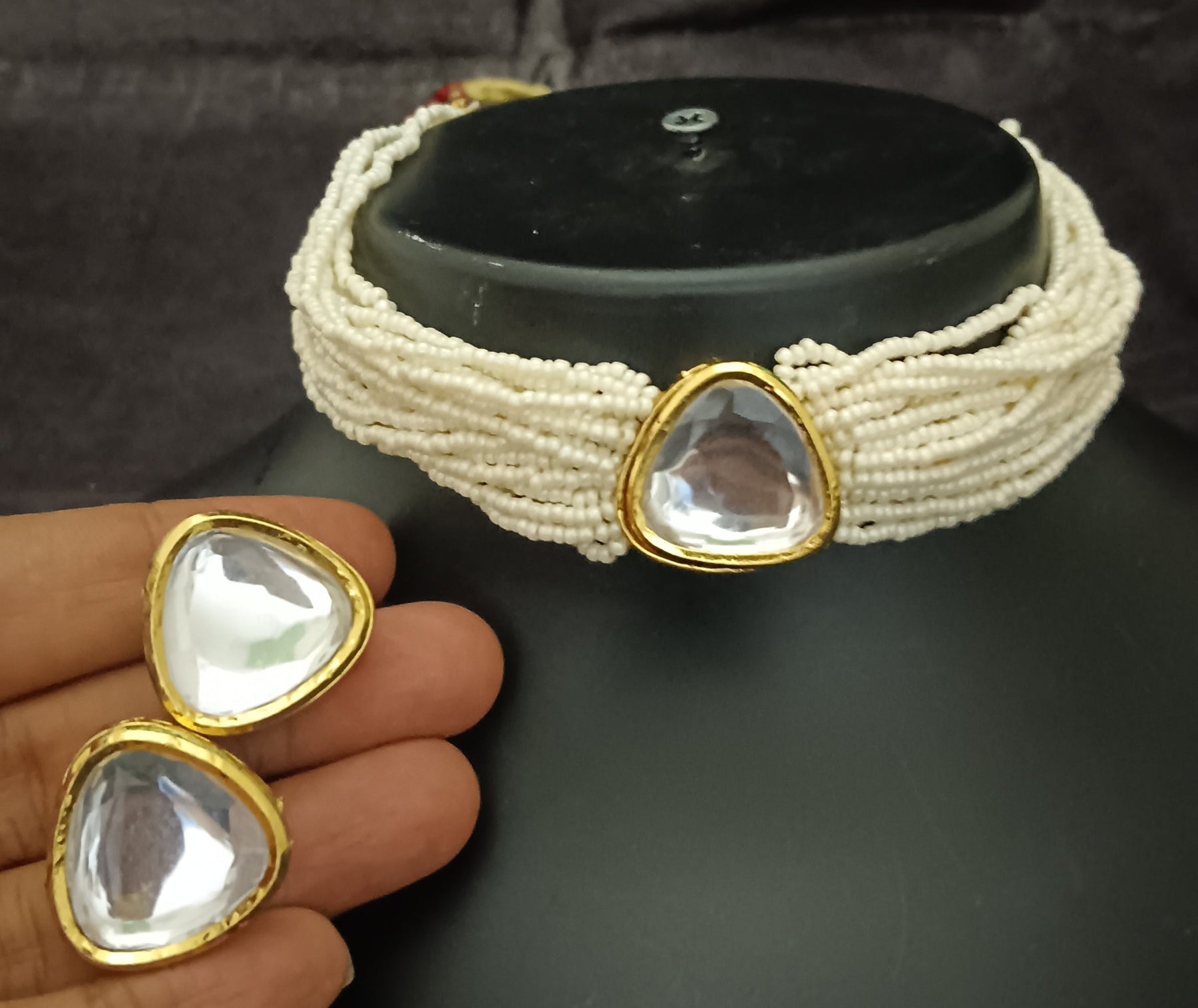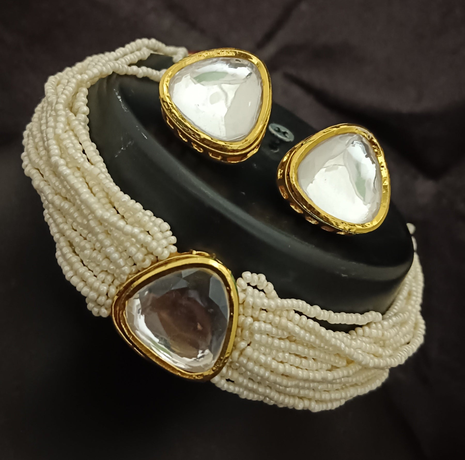 Heart Shape Polki Kundan Kediya Moti Choker Jewelllery Set