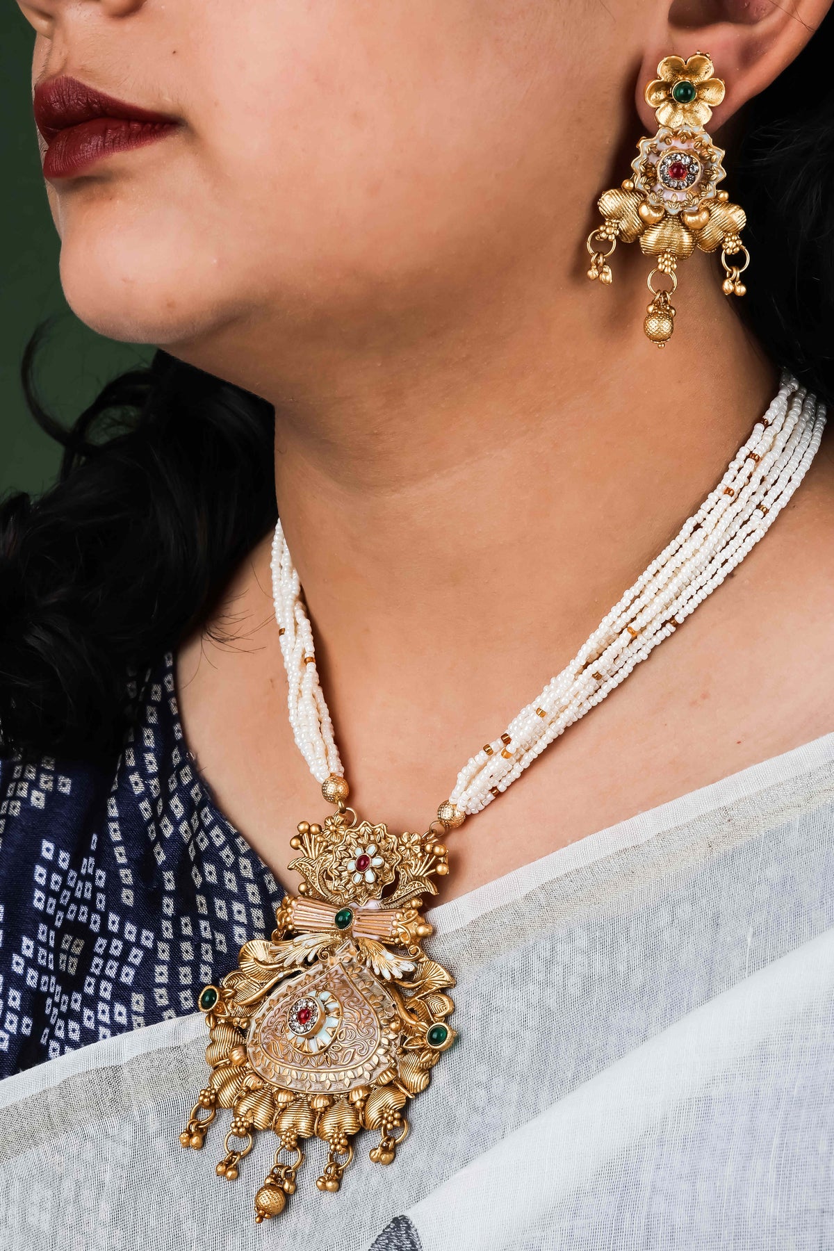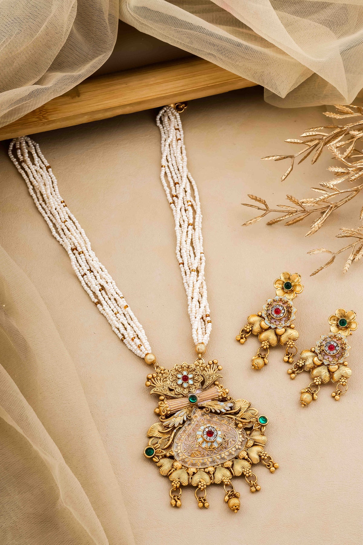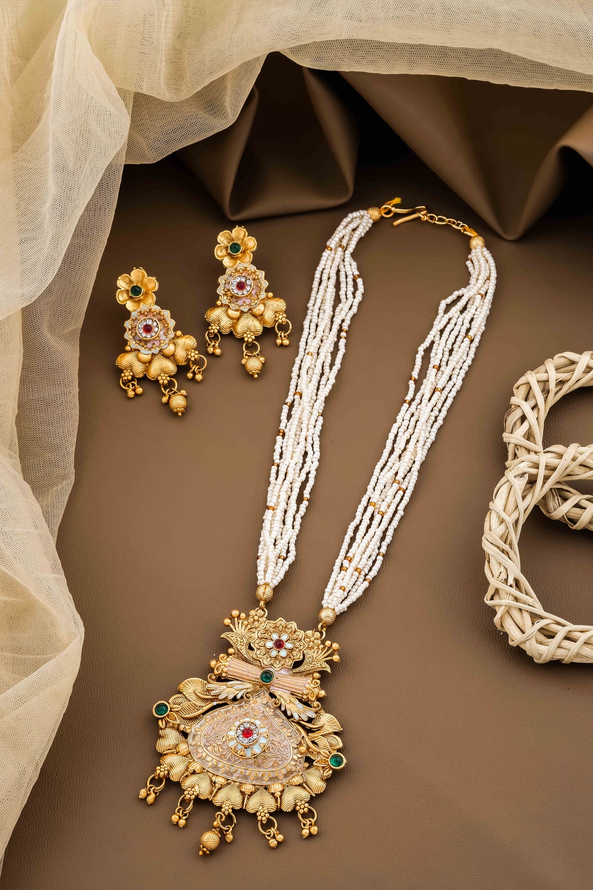 Pack Of 1 Necklace And 2 Earring Set For Women & Girls Made With Finest Copper Brass Quality And Gold Platting. Product Become Long Lasting. We Can Daily Use Even Wedding Or Else. We Attached Cotton Long Adjustable Chain Dori With Very Shiny Finish.