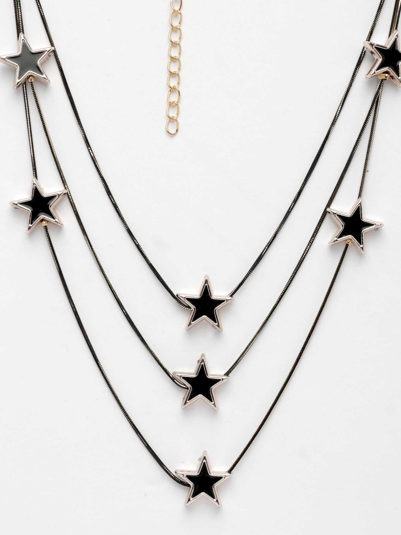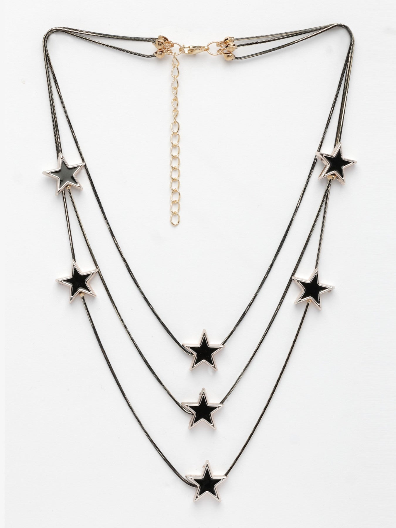 Style Note: The Nvr Women'S Black Star-Shaped Layered Fashion Necklace Is A Whimsical And Stylish Accessory That Adds A Touch Of Celestial Charm To Any Outfit. Featuring Beautifully Designed Star-Shaped Pendants In Sleek Black, This Layered Necklace Offers A Unique And Eye-Catching Look. The Layered Structure Creates Depth And Movement, Making It Ideal For Both Casual Wear And Special Occasions. With An Adjustable Chain For A Comfortable Fit, This Necklace Can Easily Be Styled To Suit Your Personal Aesthetic—Whether Worn Alone For A Subtle Statement Or Layered With Other Pieces For A More Dynamic Effect. Perfect For Those Who Appreciate Playful And Contemporary Designs, This Necklace Is A Must-Have Addition To Any Fashion-Forward Jewelry Collection.