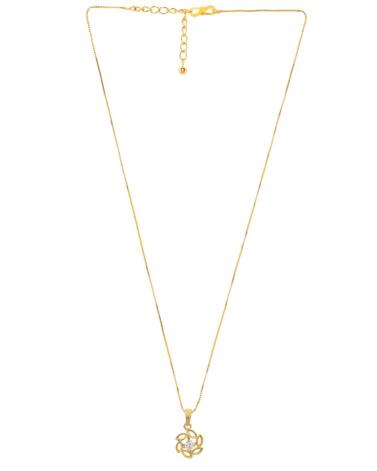 This Gold Plated Designer Ad Studded Pendant With Chain Is A Statement Piece Of Elegance And Sophistication. Adorned With Brilliant Ad (American Diamond) Stones, The Pendant Shimmers With Every Movement. Its Intricate Design, Paired With Durable Gold Plating, Ensures A Timeless, Luxurious Look. Perfect For Adding A Touch Of Glamour To Both Casual And Formal Attire.