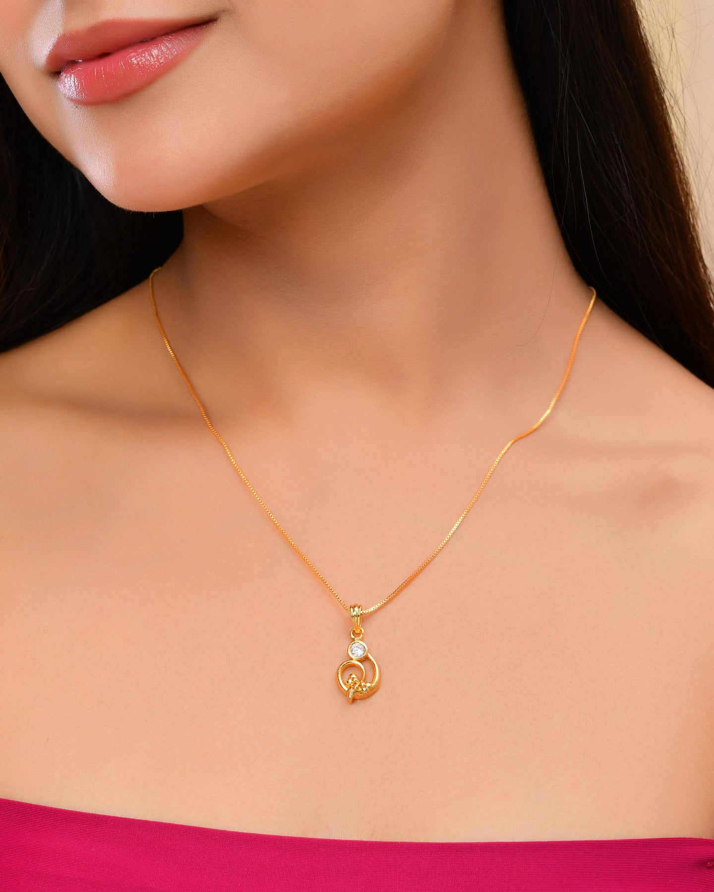 This Gold Plated Designer Ad Studded Pendant With Chain Combines Contemporary Design With Timeless Elegance. Adorned With Sparkling Ad (American Diamond) Stones, The Pendant Catches The Light Beautifully, While The Gold Plating Offers A Luxurious, Durable Finish. Perfect For Adding A Sophisticated Touch To Any Outfit, This Pendant Is Ideal For Both Casual And Formal Occasions.