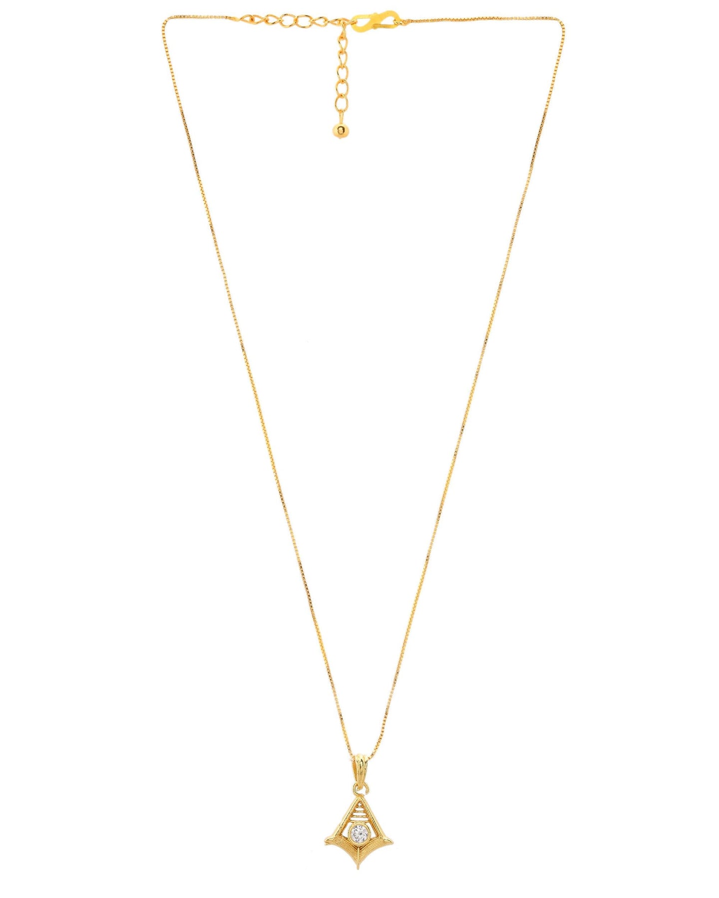 This Gold Plated Designer Ad Studded Pendant With Chain Is The Epitome Of Elegance And Sophistication. Featuring Brilliant Ad (American Diamond) Stones, The Pendant Sparkles With Every Movement, While The Gold Plating Adds A Luxurious Shine. Perfect For Any Occasion, This Versatile Piece Enhances Both Casual And Formal Looks, Making It An Essential Addition To Your Jewelry Collection.