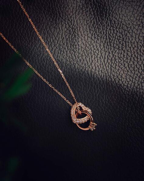 This Is A Romantic And Elegant Pendant Necklace Featuring A Heart-Shaped Key Design. The Pendant Combines A Sparkling Heart Outline—Adorned With Tiny White Cubic Zirconia Stones—With A Gold-Tone Key Base, Symbolizing The "Key To The Heart." It'S Suspended From A Delicate Gold Chain, Making It Perfect For Everyday Elegance Or As A Thoughtful Gift.