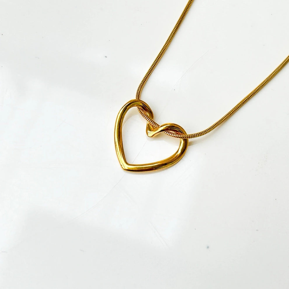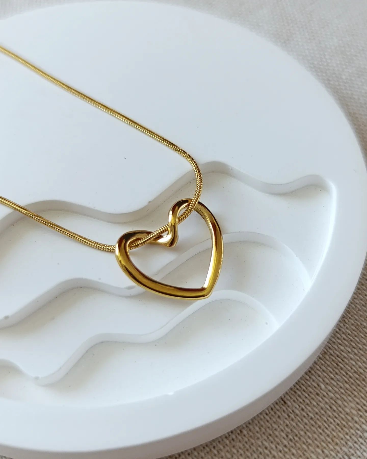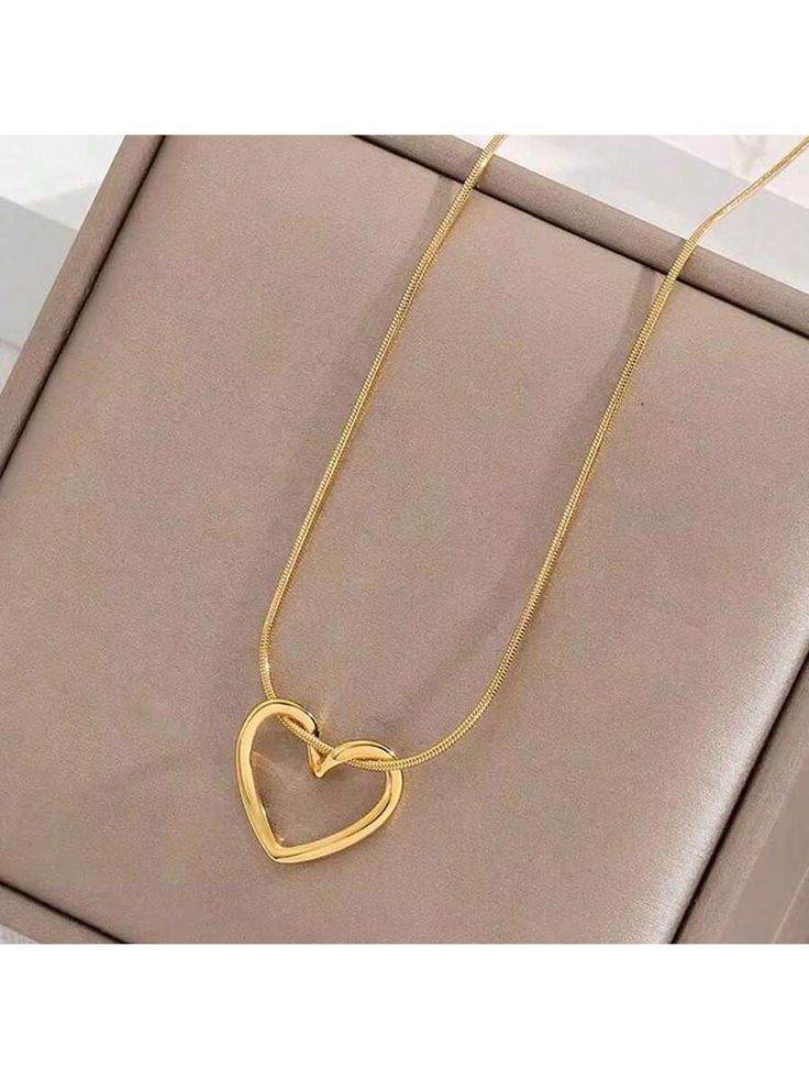 This Is A Minimalist Gold Heart Pendant Necklace With A Sleek And Modern Design. The Pendant Features An Open Heart Shape With A Smooth, Polished Finish, Suspended From A Delicate Snake Chain. Its Simplicity Gives It A Timeless Charm, Making It Perfect For Both Casual And Formal Wear.