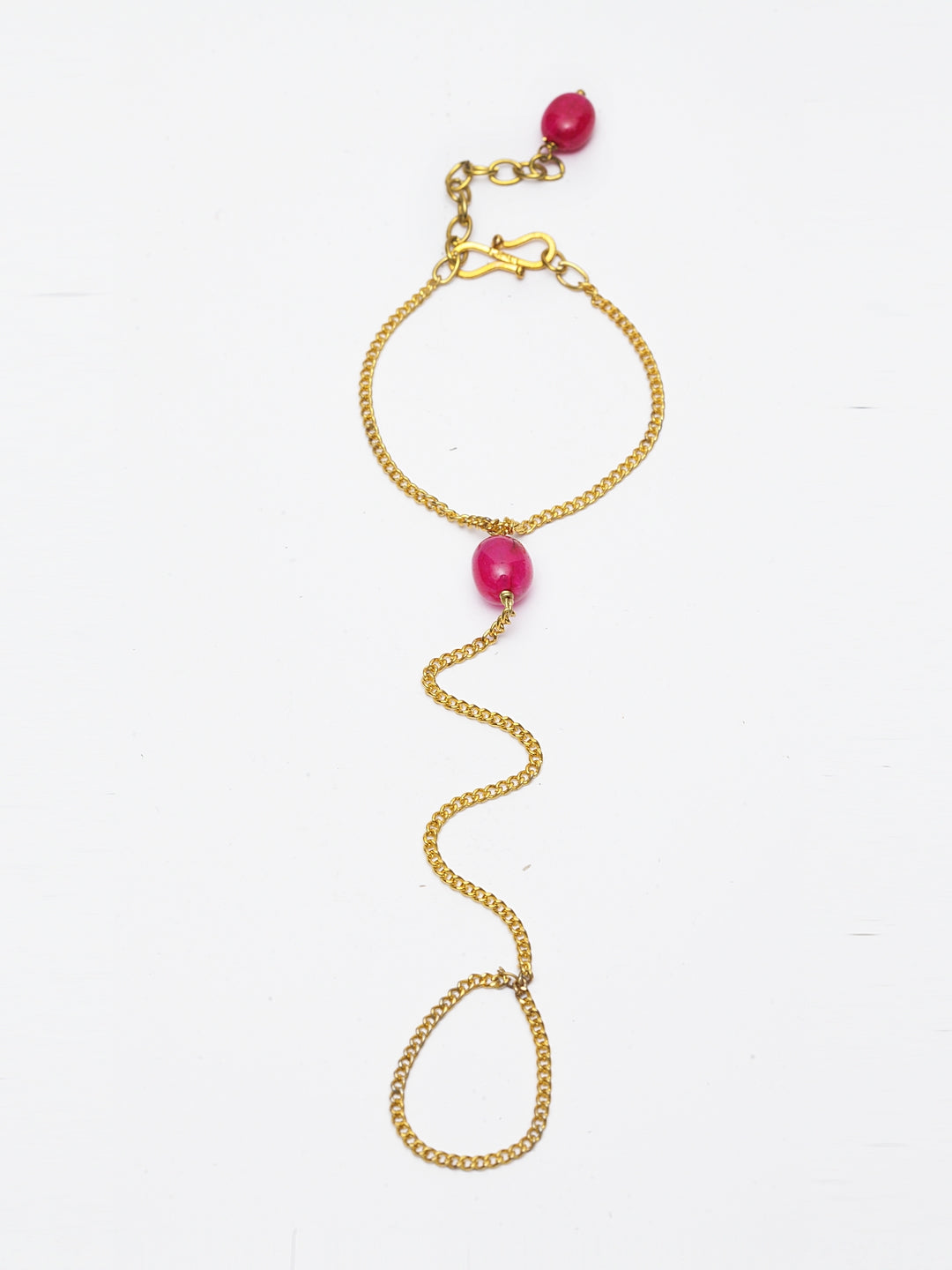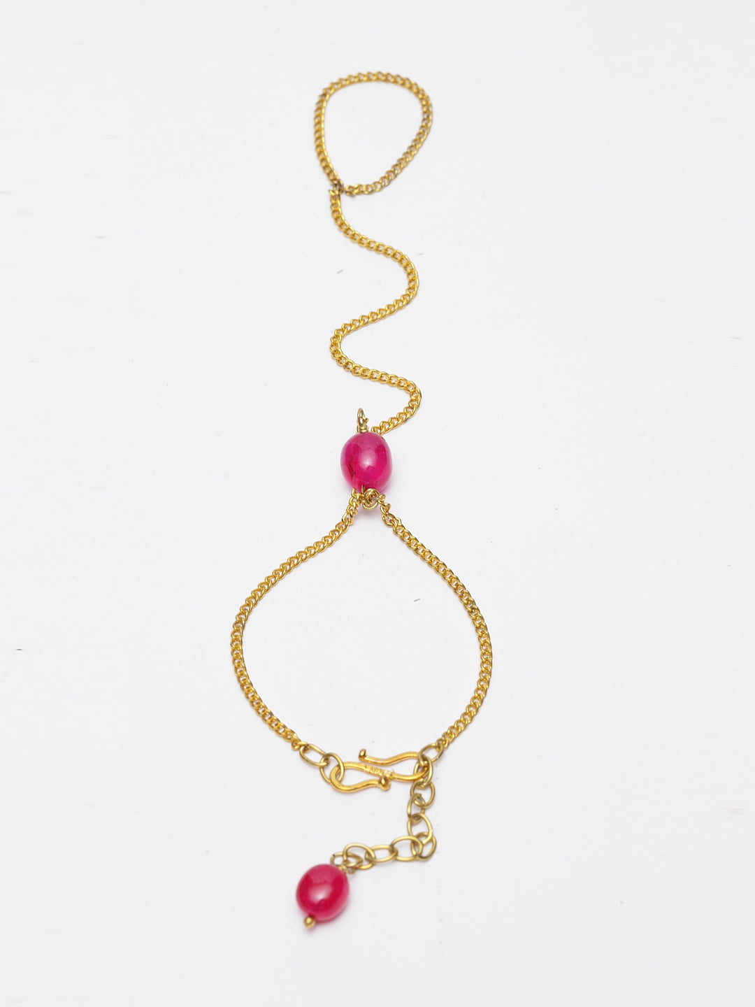 Red & Rakhi Bracelet With Faux Ruby &; Category Of Jewellery Is Hand Jewellery; Sub Category Is Rakhi; Ideal For Women; Base Color Is Red; Gemstones Used - Faux Ruby; Plating Is Gold-Plated; Base Metal Is Alloy; Other Material Used - 0; Size Is Freesize; Adjustable - Yes; Weight Is 5 Gms; Mesaurements - Length Of Bhabhi Batiji Rakhi =18.84 Cm; Width = 1 Cm; Content 1 Hathful Rakhi