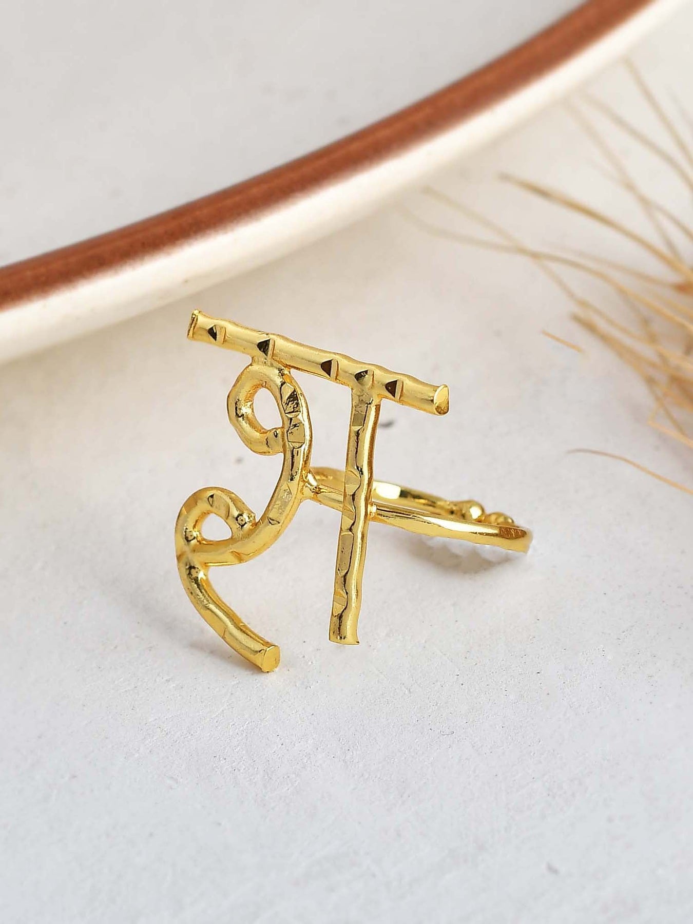 Akshar Ring Sha1 Color :Gold Material :Brass Closure :Hoop Care Instructions :Keep Away From Moisture Weight :0.5G