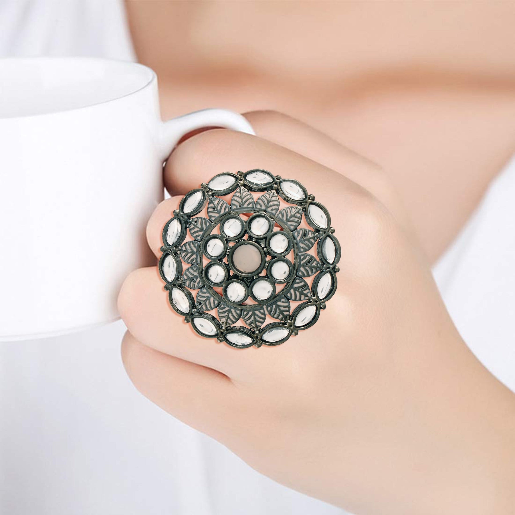The Elegant Cz American Diamond Adjustable Ring Is A Type Of Jewelry That Features A Sparkling Cubic Zirconia (Cz) Stone Designed To Look Like A Diamond. The Ring Is Adjustable, Meaning It Can Be Resized To Fit A Range Of Finger Sizes. Cz Is A Synthetic Stone That Is Often Used As A Diamond Alternative Due To Its Similar Appearance And Affordability. This Makes The Elegant Cz American Diamond Adjustable Ring A Popular Choice For Those Who Want The Look Of A Diamond Without The High Cost. The Ring Is Typically Made With A Silver Plated Band, Which Adds To Its Elegant Appearance. It Is A Versatile Accessory That Can Be Worn For Various Occasions, Such As Formal Events, Weddings, Or Everyday Wear. Overall, The Elegant Cz American Diamond Adjustable Ring Is A Beautiful And Affordable Piece Of Jewelry That Can Add A Touch Of Glamour To Any Outfit.