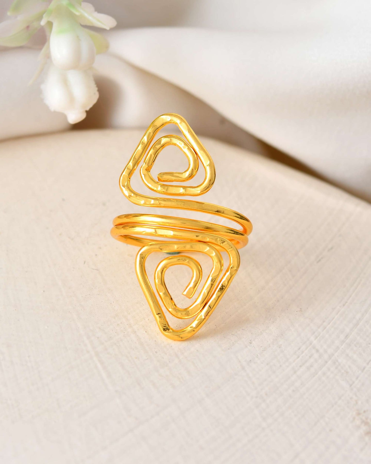 Elevate Your Accessory Game With This Gold-Plated Triple-Layer Adjustable Finger Ring, Crafted In A Unique Geometric Design To Bring Bold Elegance To Your Hands. Featuring A Distinctive Triple-Heart Abstract Pattern, This Ring Is Beautifully Textured With A High-Polish Finish And Layered Structure To Give It A Stylish, Stacked Look—All In One Piece.