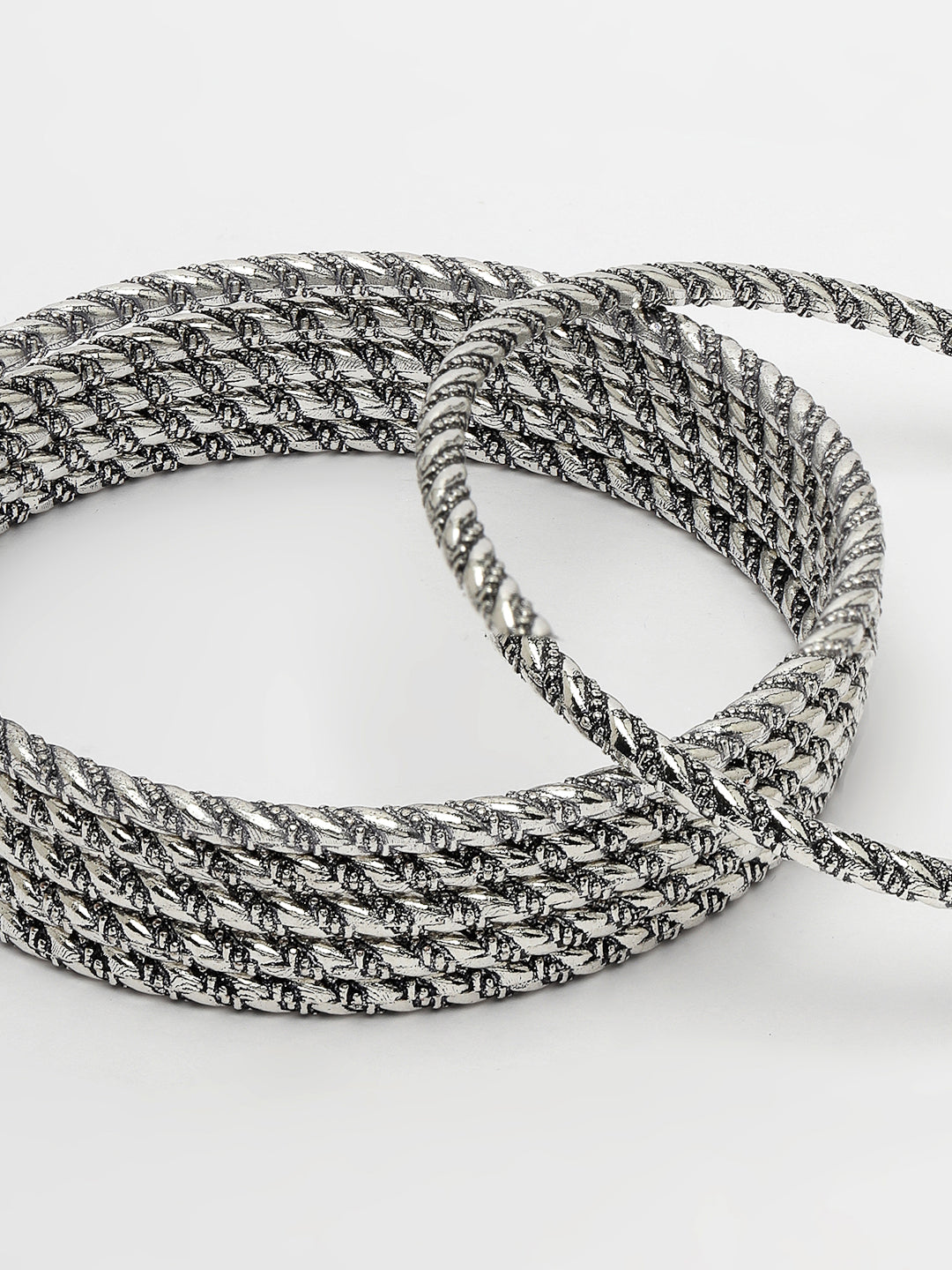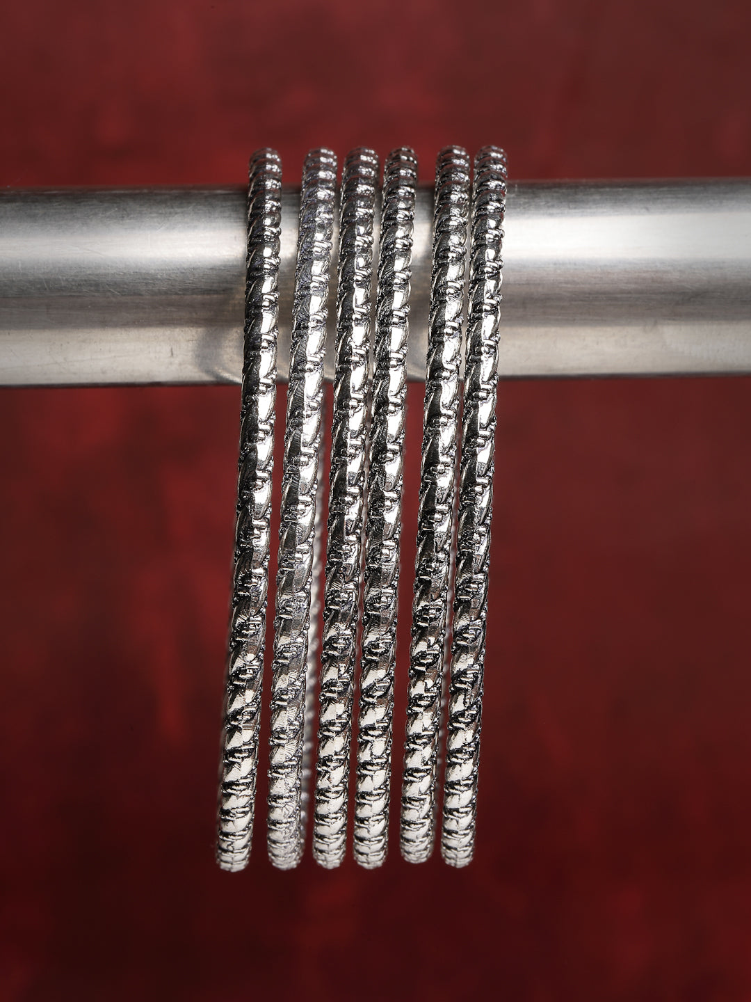 Style Note: Indulge in the captivating charm of the NVR Women Set of 6 Silver-Toned German Silver Oxidised Bangles. These intricately crafted bangles exude an air of timeless elegance and cultural sophistication. With their oxidized detailing and silver-toned finish, they seamlessly blend tradition with modernity, making them the perfect accessory for any occasion, from formal events to casual outings. Embrace the versatility of these handcrafted bangles as they adorn your wrists, effortlessly enhancing your ensemble with their understated yet striking beauty. Let your style speak volumes with these stunning pieces, showcasing your appreciation for craftsmanship and grace.