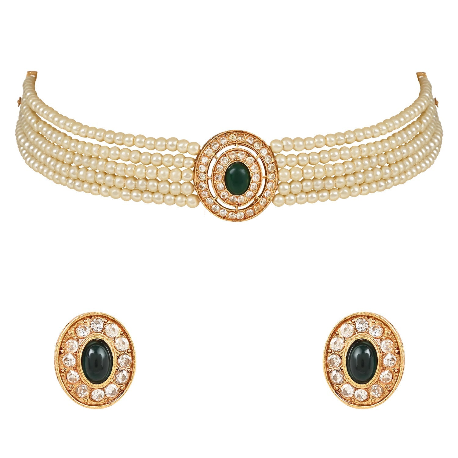 Introducing The Stunning I Jewels 18K Gold Plated Traditional Handcrafted Stone Studded Pearl Choker Necklace Jewellery Set With Earrings, A Must-Have Addition To Any Jewellery Collection. This Exquisite Set Is Designed For Women And Girls Who Appreciate Traditional Beauty And Fine Craftsmanship. The Choker Design Of The Necklace Sits Snugly Around The Neck, Drawing Attention To Your Neckline And Adding A Touch Of Glamour To Any Outfit.The Matching Earrings Complement The Necklace Perfectly, Completing The Set With A Touch Of Elegance And Style.