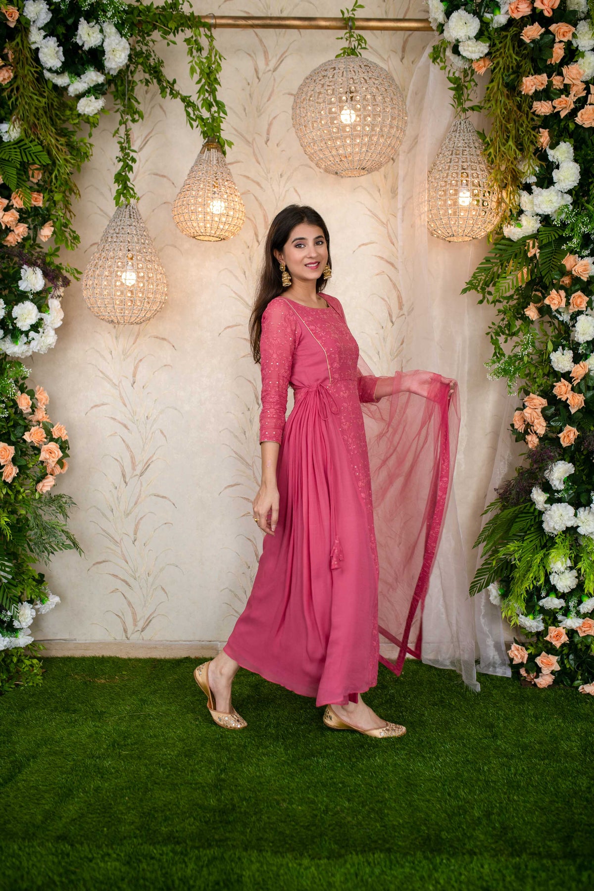 Women's Blush Pink Gathered Long Kurta