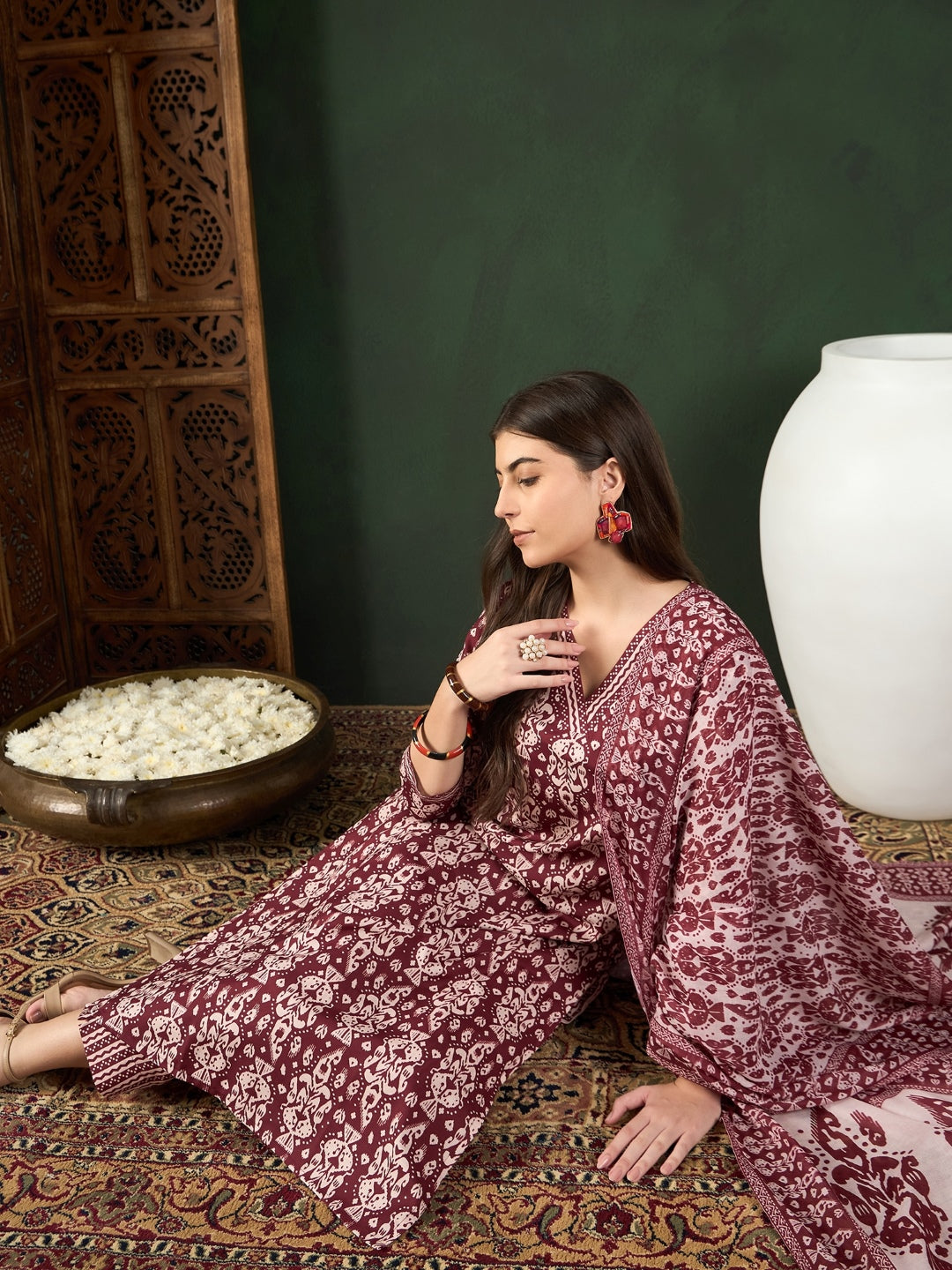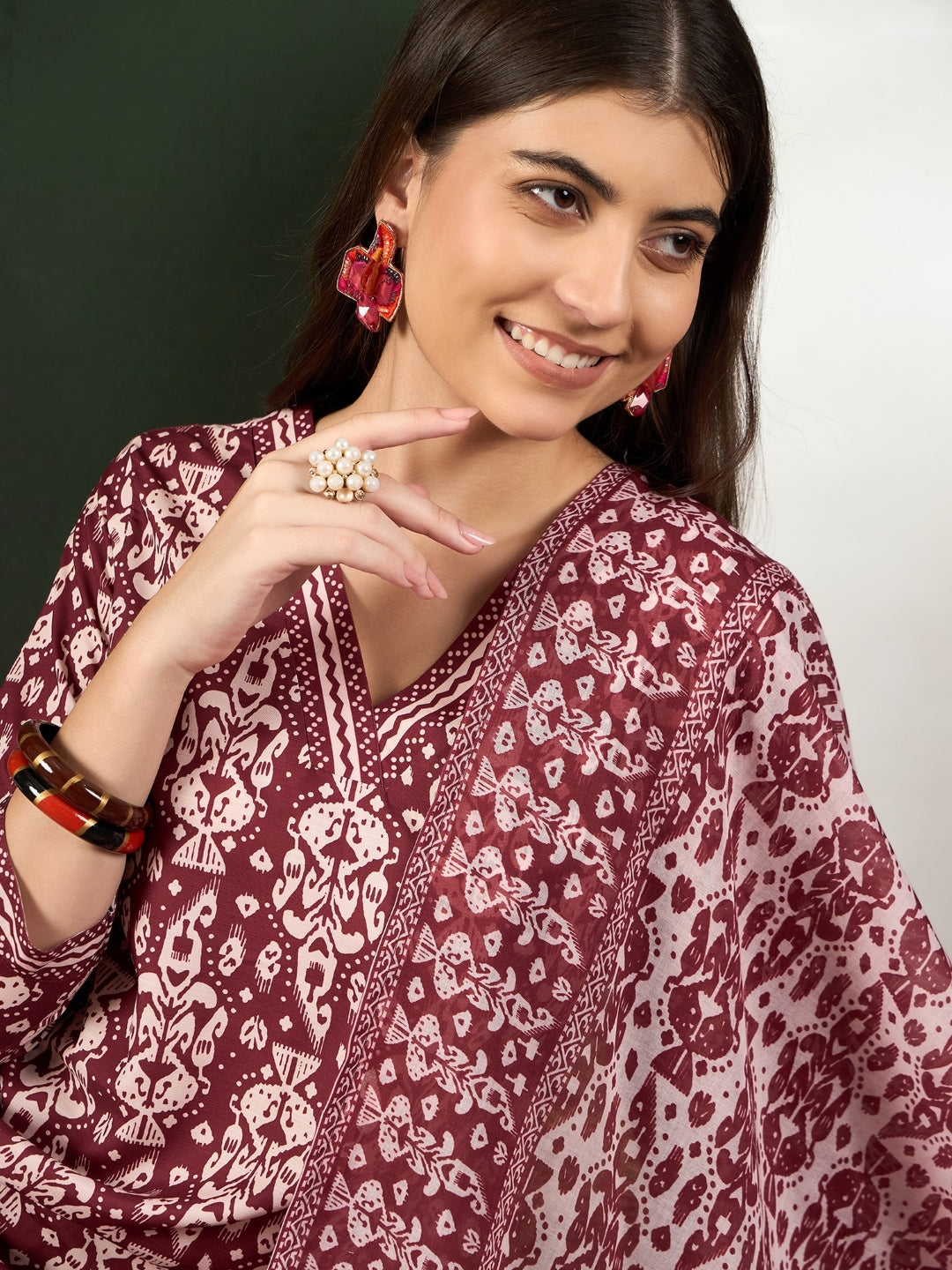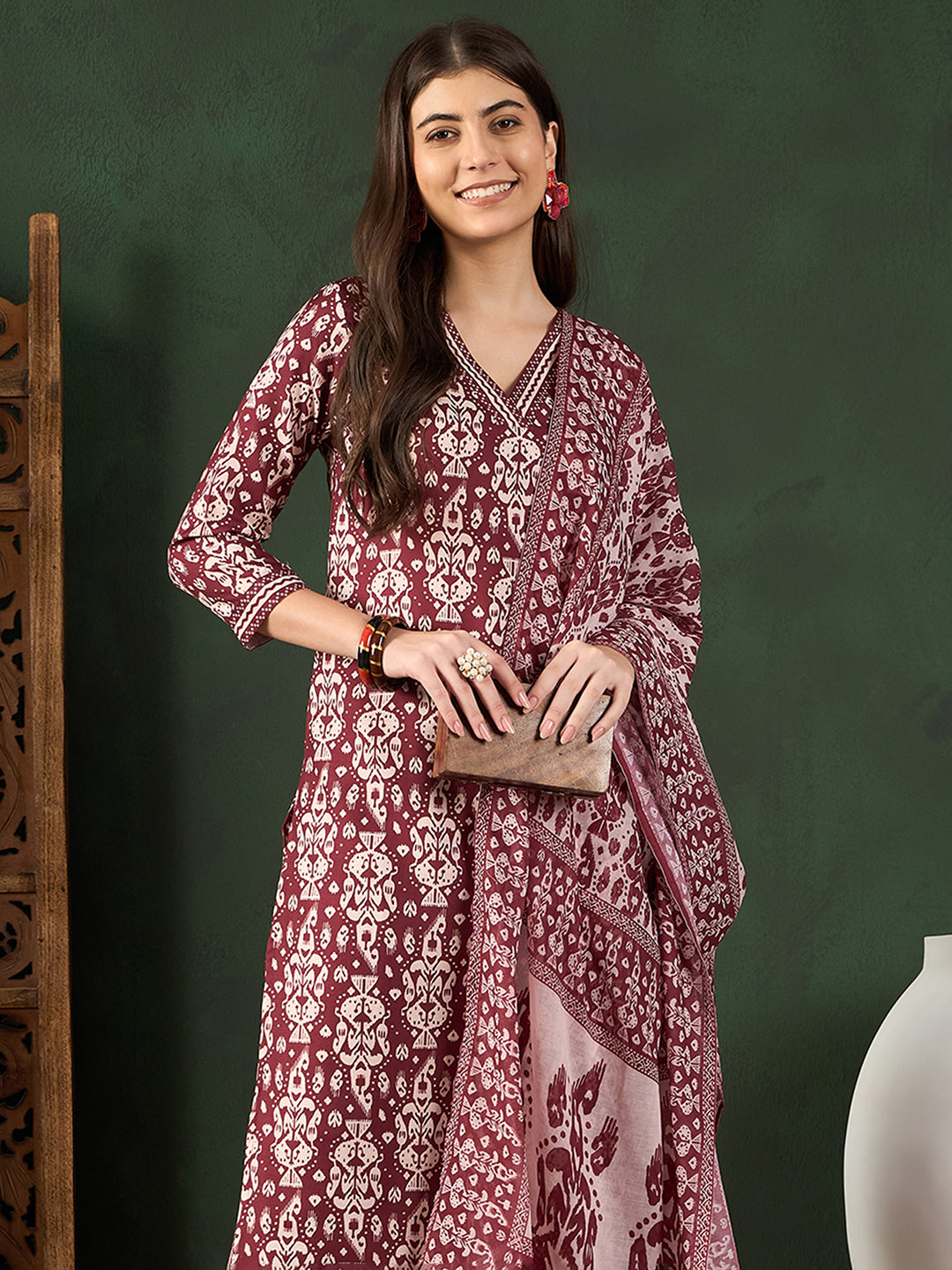 Ahika Women Maroon Rayon Blend Ethnic Motifs Printed Straight Kurta Trouser With Dupatta By Wearing Our New Amazing Product You Look Very Graceful Or Pretty. Thank you For Choosing Our Brand AHIKA Product To Wear. We Hope That You Feel too much Better After Purchase Our Product. This Calf Length Straight Top Hemline Three-Quarter Sleeves, Side Slits kurta Sets is Best Match for Office-Work Wear, Normal Occasions, Get Together, Regular, Daily Use, Evening Wear. Perfect For Party, Wedding, Festival, Traditional, Causal, Bridle, Function, Trip. Best Gift For Your Loved Ones.