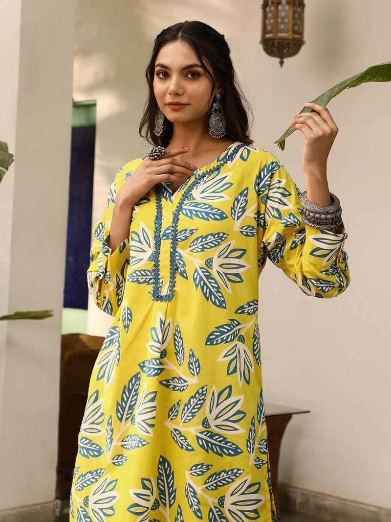 Women's Floral Printed Knee Lengt V Neck Kurti And Pant Set (K161)