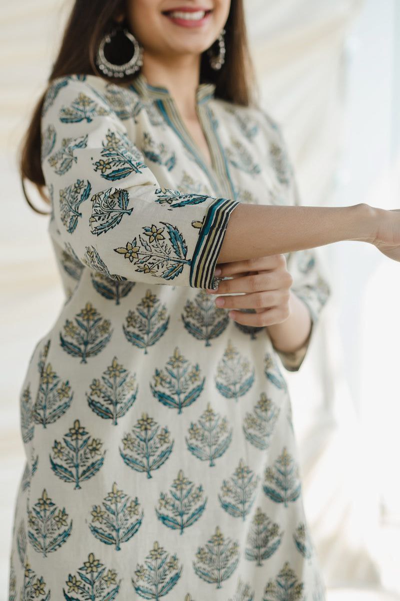 Women's Floral Printed Knee Length V Neck 3/4 Sleeves Rayon Kurta Set (K195)