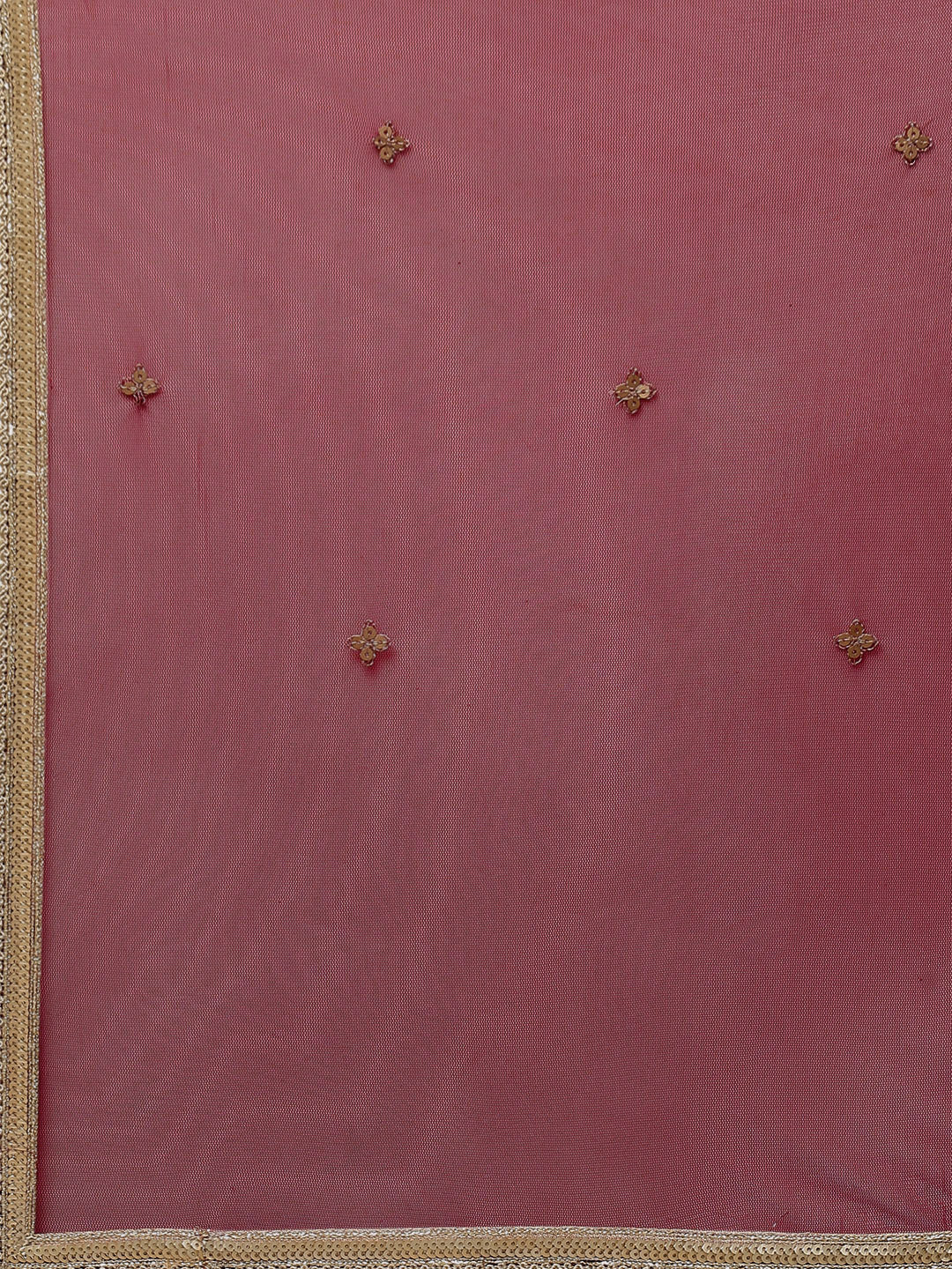 Women's Maroon Velvet Hand Work Kurta Pant With Net Dupatta Set