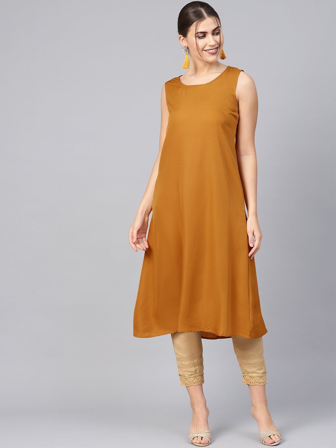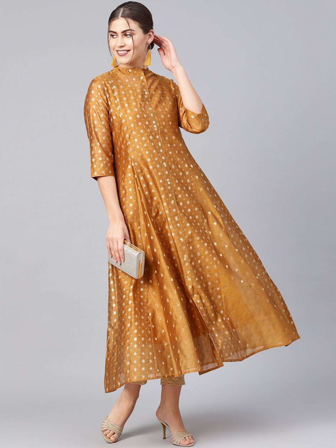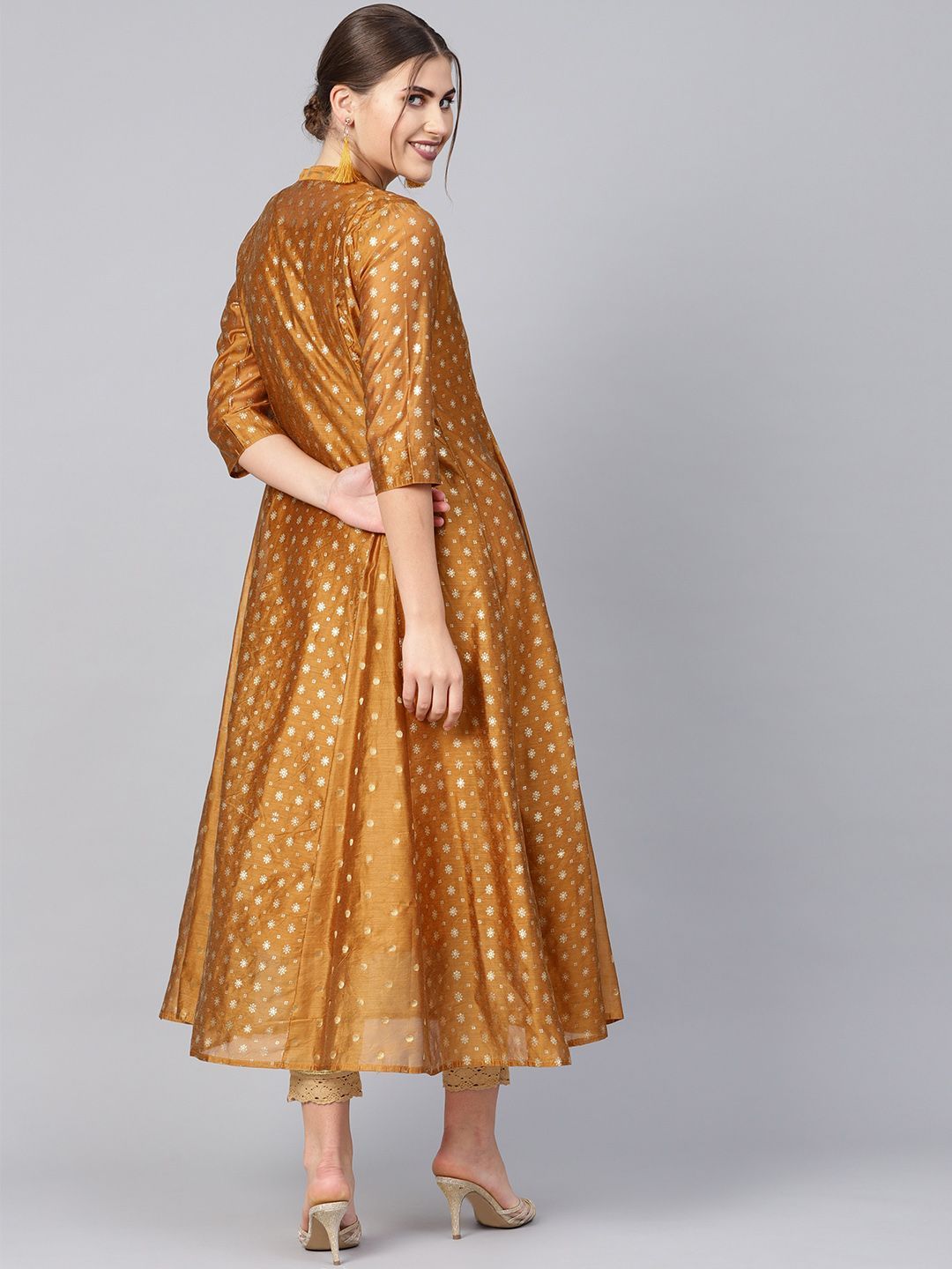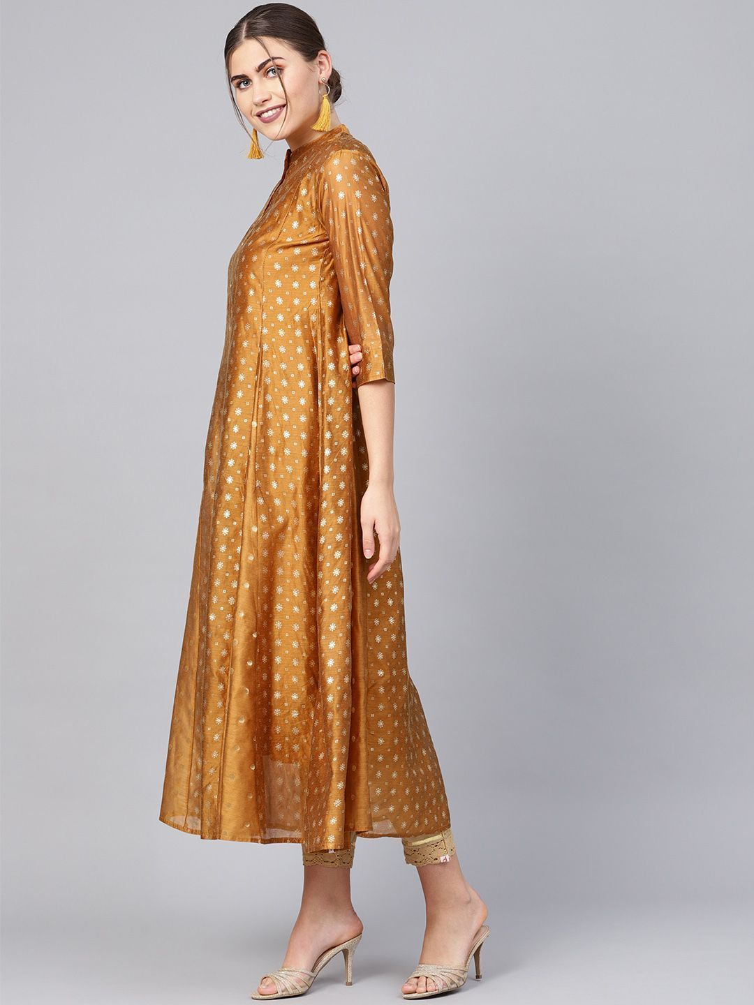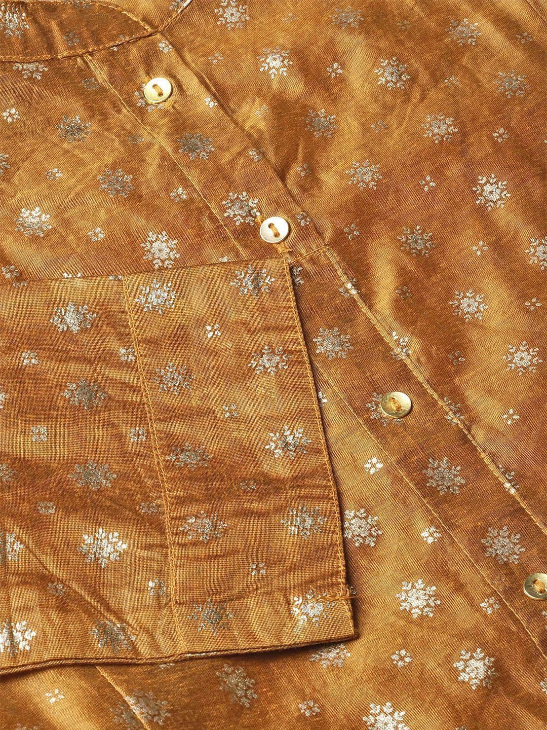 Product Description :Juniper Mustard Chanderi Printed Layered Kurta