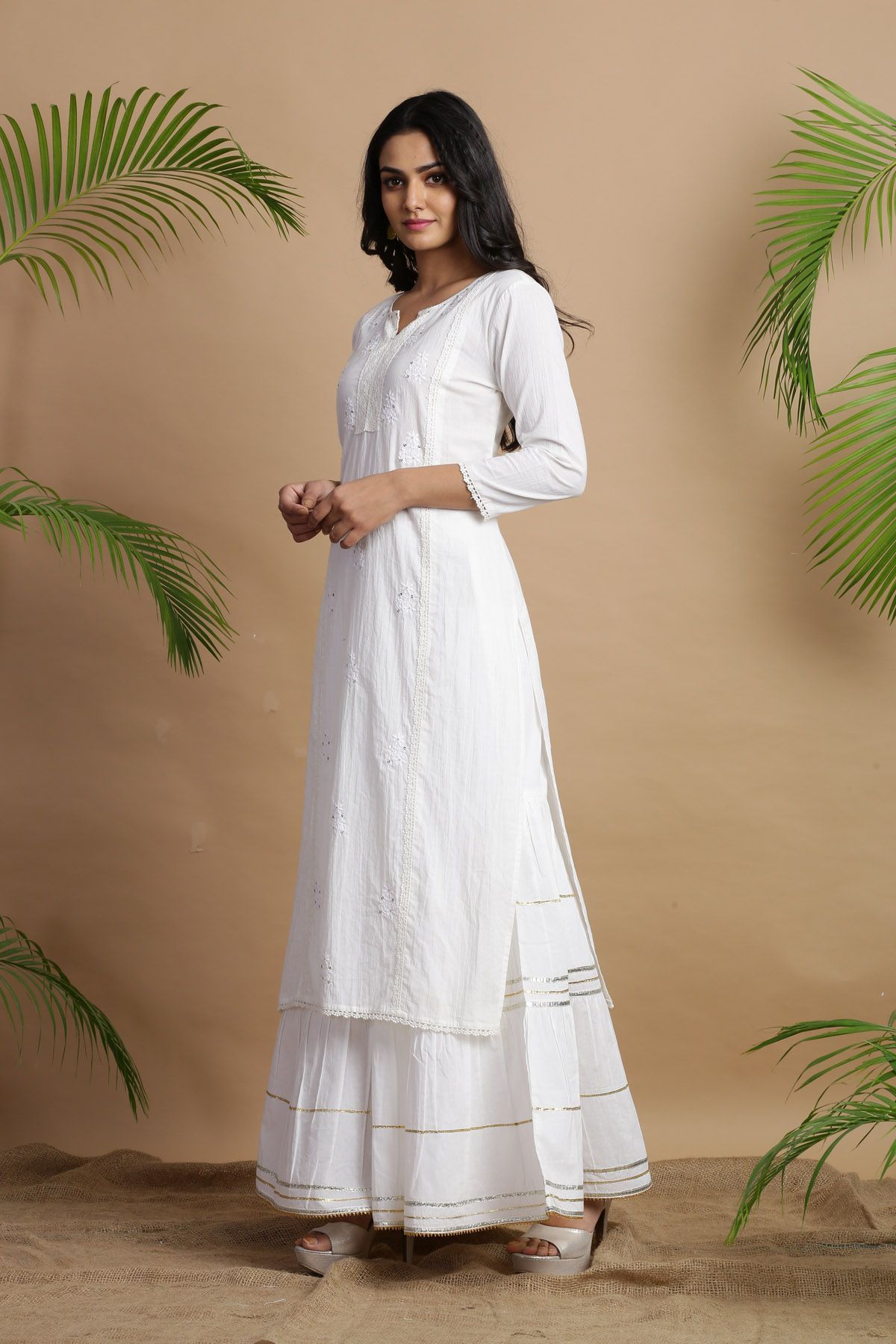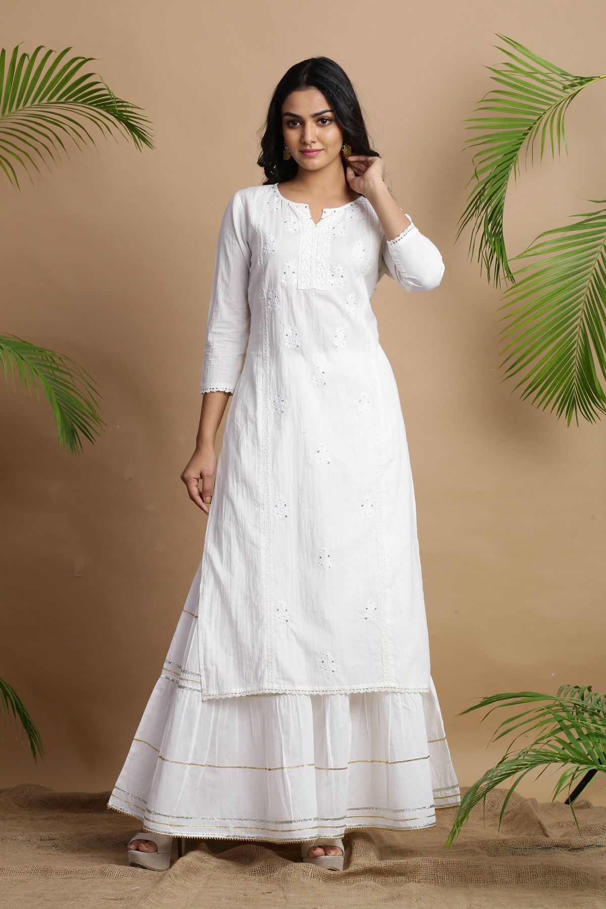 Product Description :Juniper Offwhite Cotton Voile Embroidered Straight Kurta
