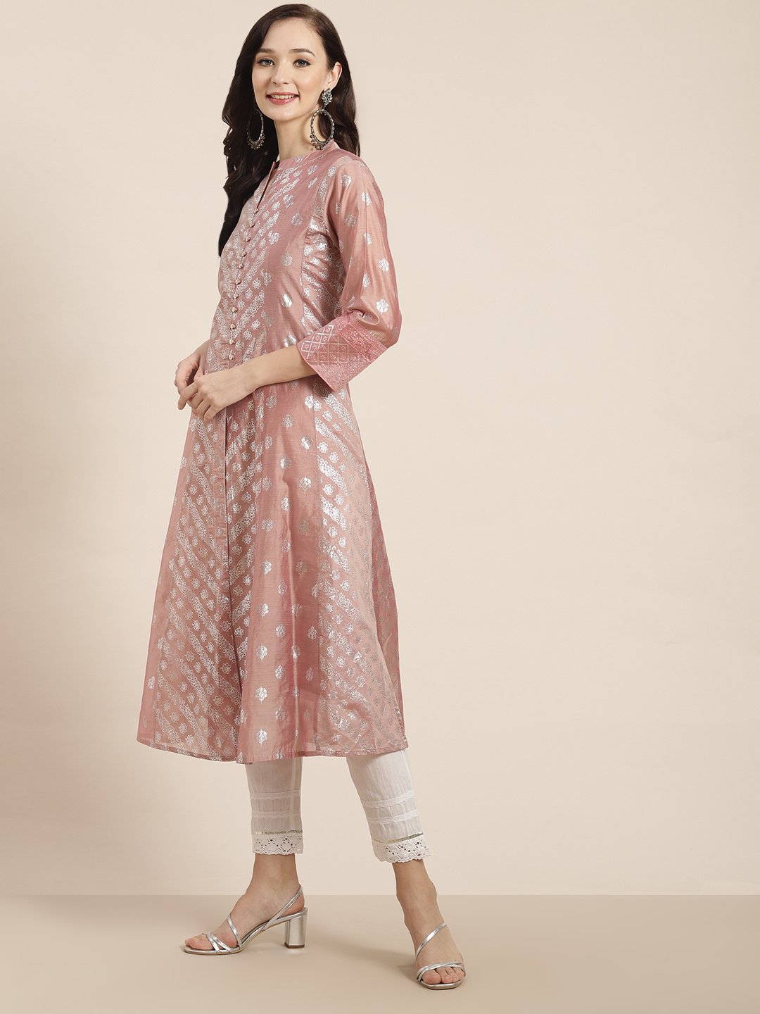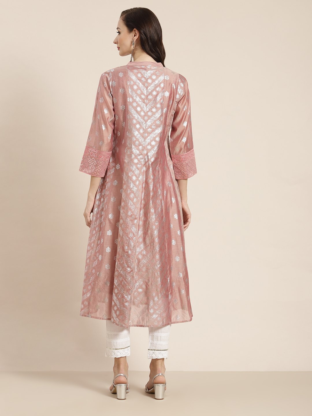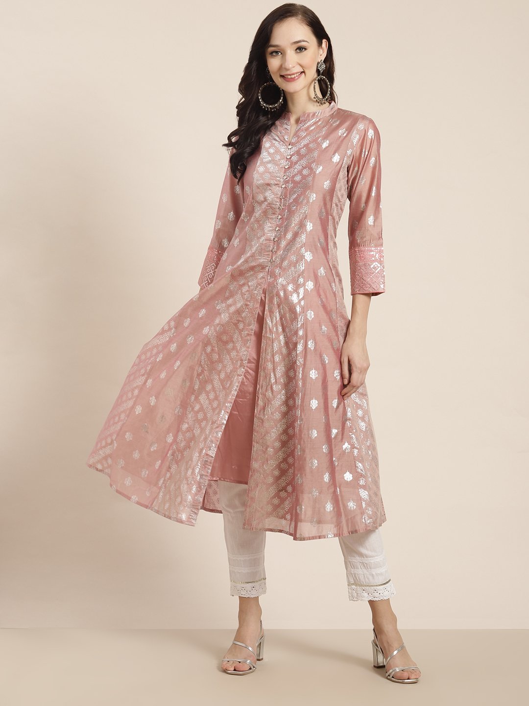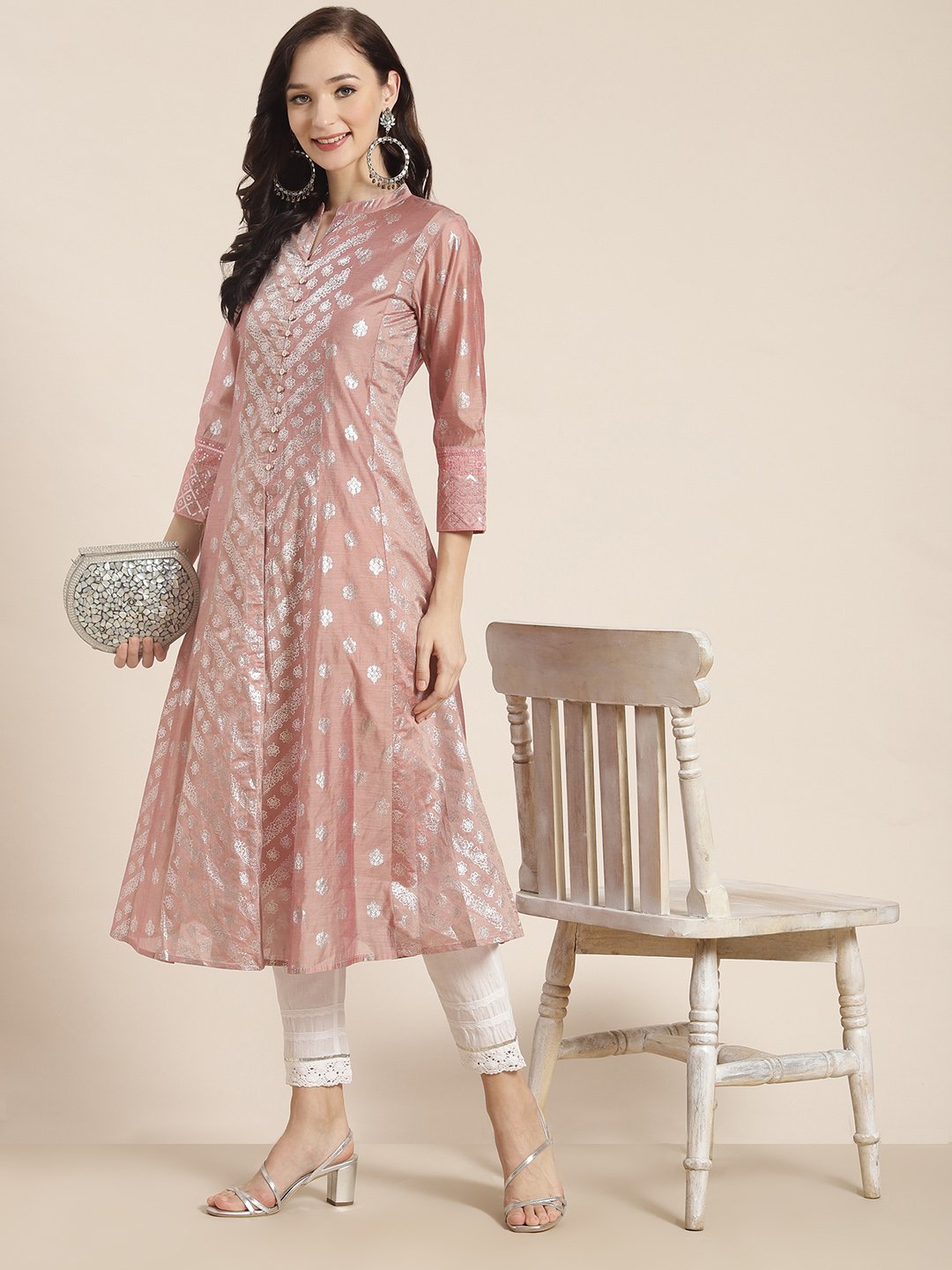 Product Description :Juniper Rustpink Chanderi Silk Gold Foil Print Anarkali Kurta with Shantoon Inner