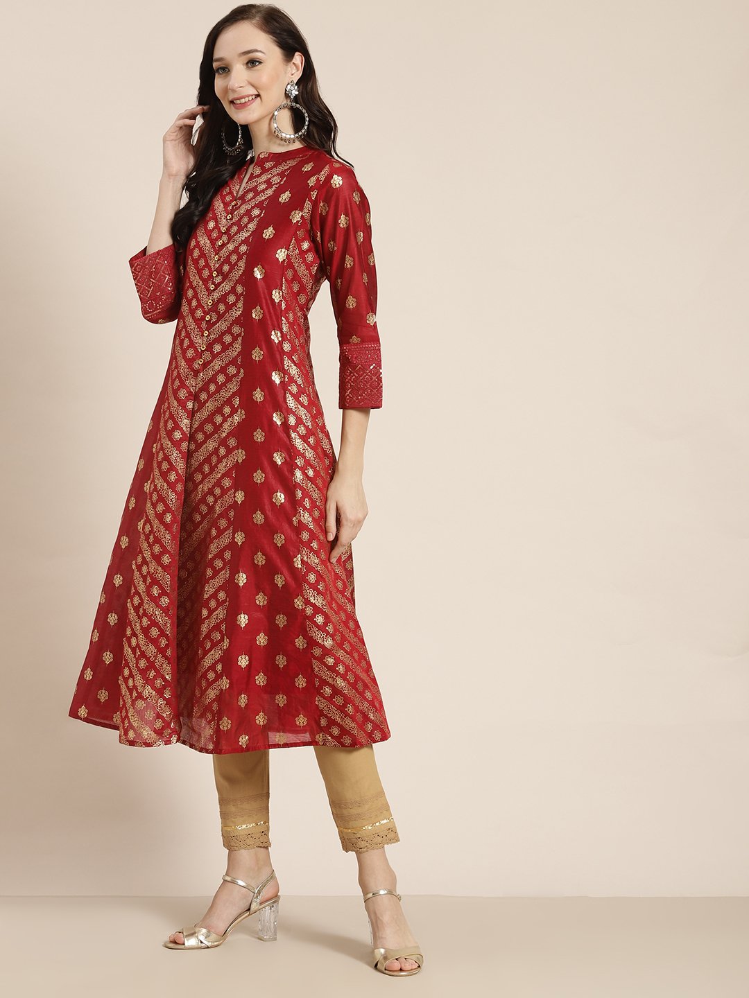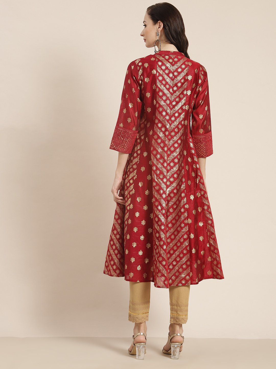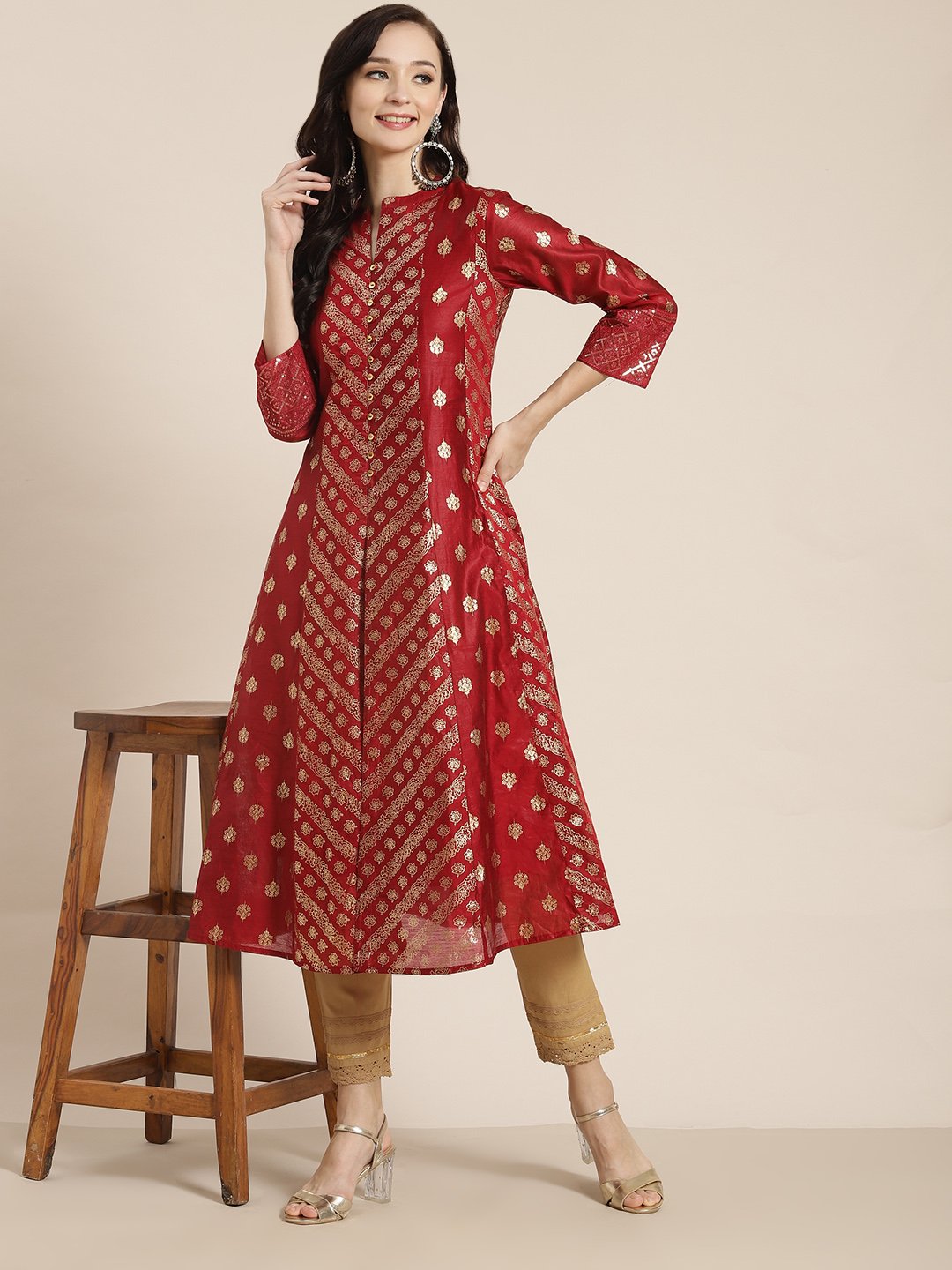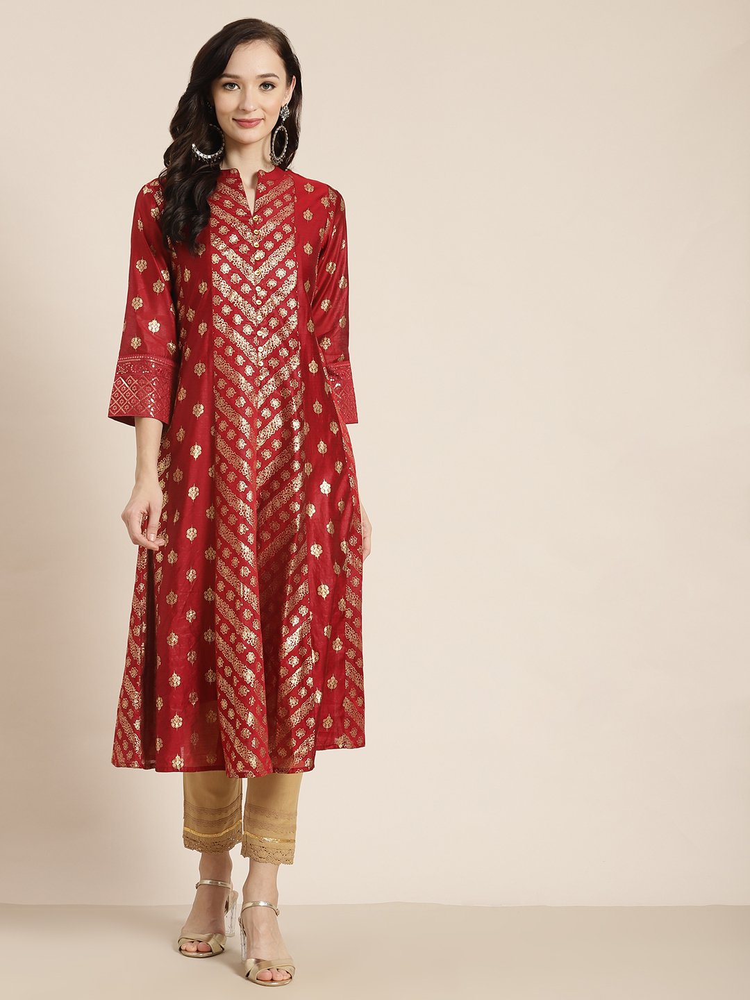 Product Description :Juniper Rustpink Chanderi Silk Gold Foil Print Anarkali Kurta with Shantoon Inner