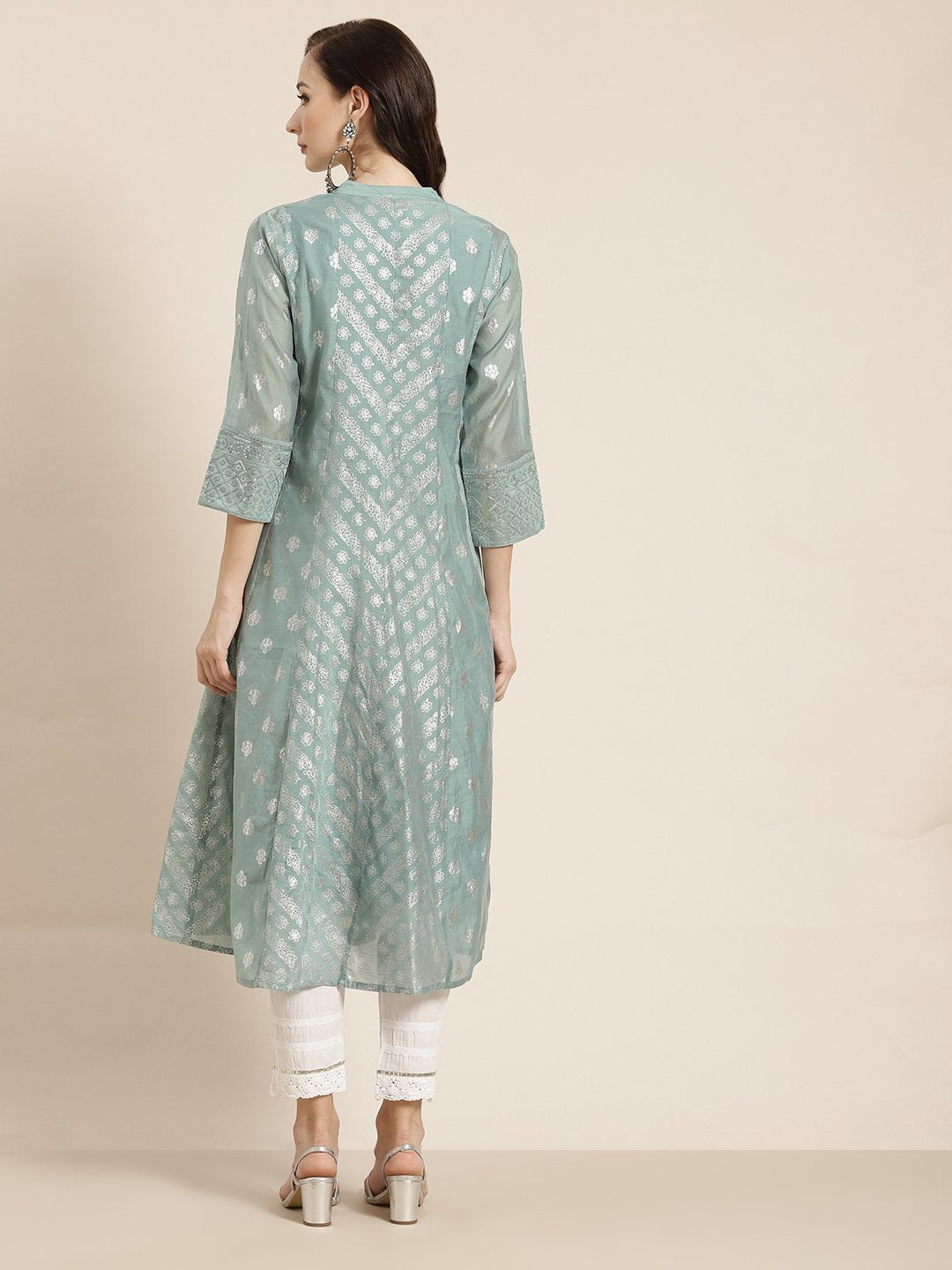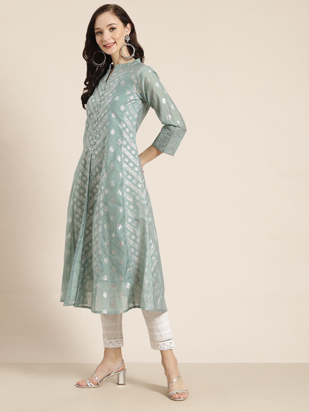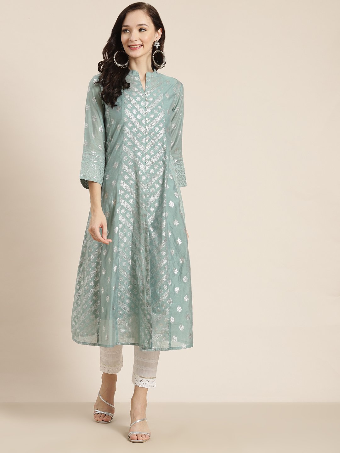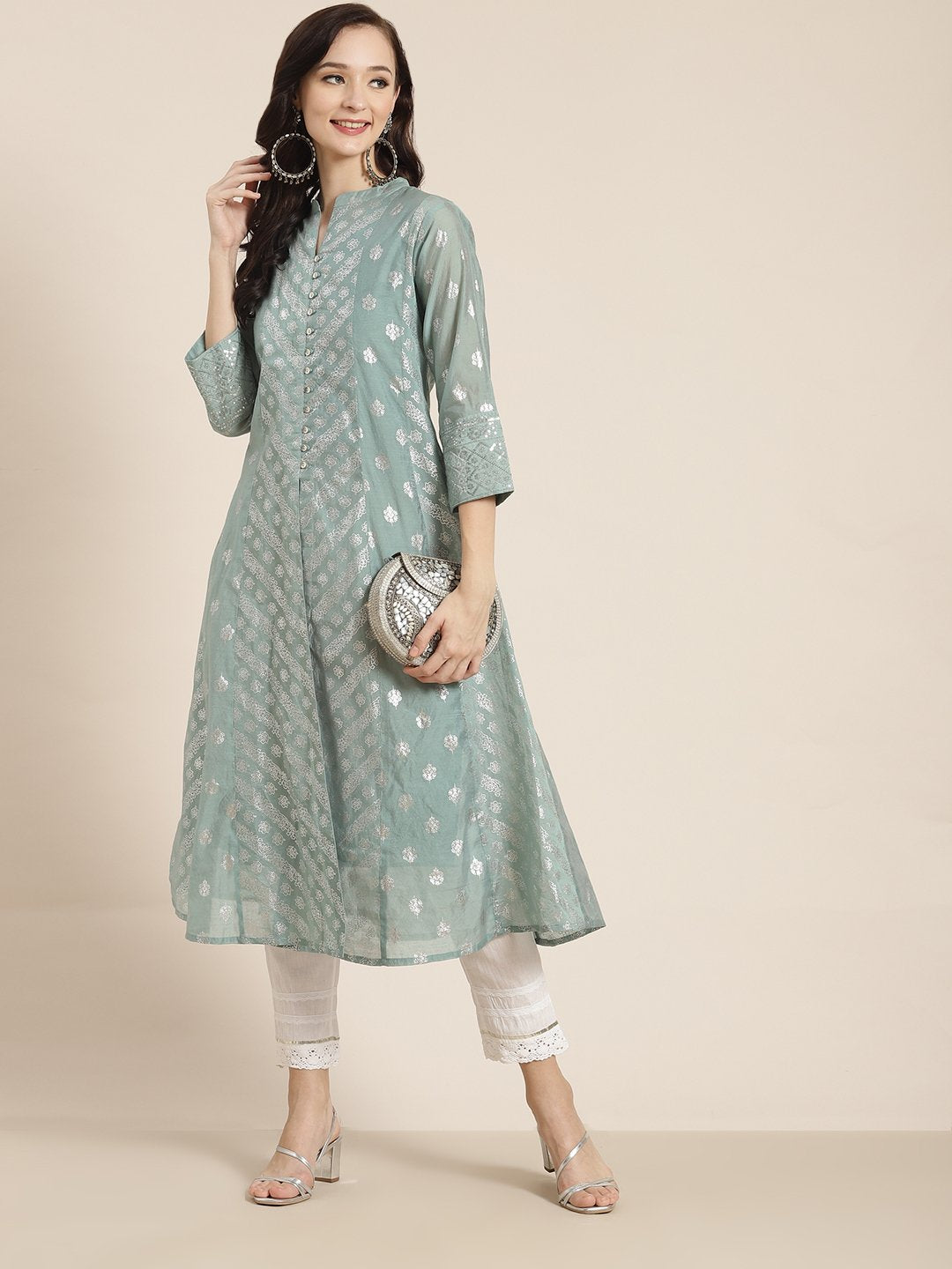Product Description :Juniper Rustpink Chanderi Silk Gold Foil Print Anarkali Kurta with Shantoon Inner