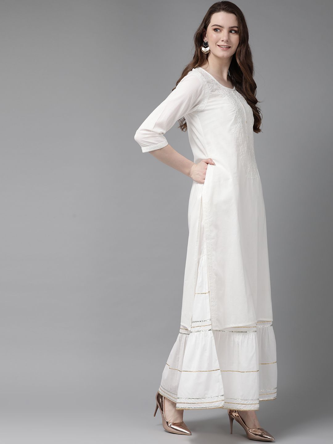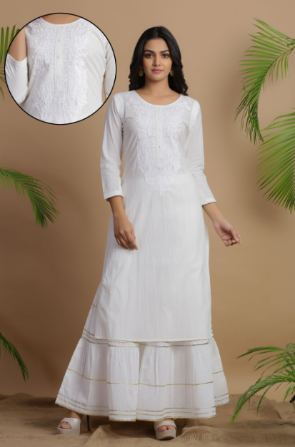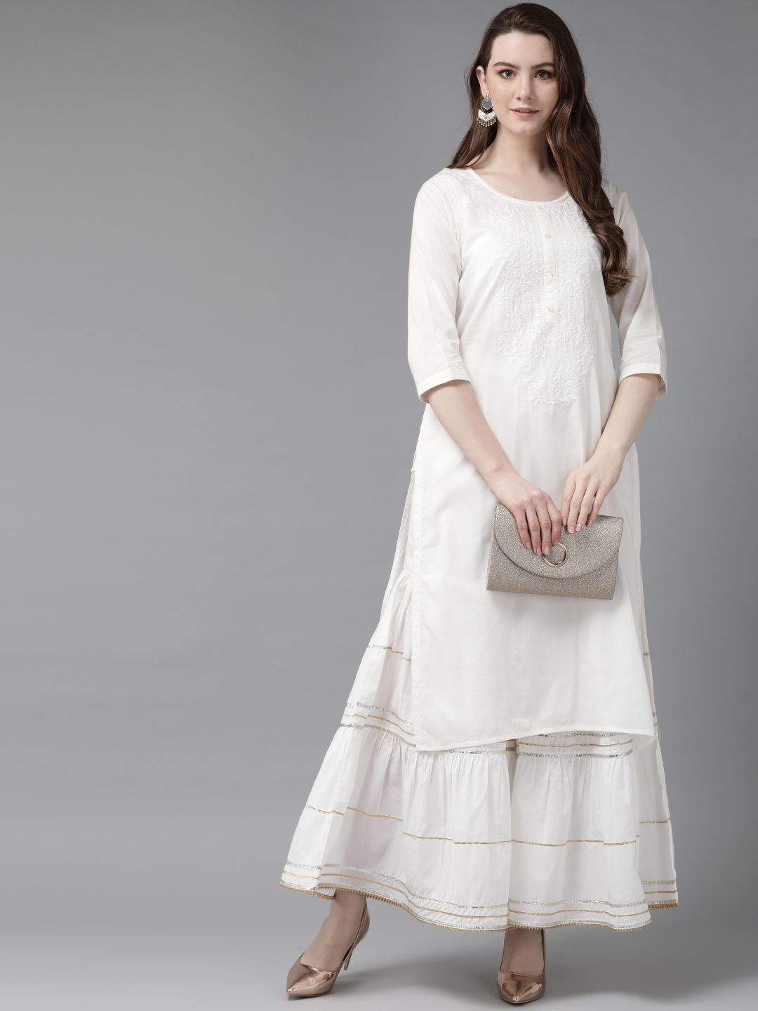 Product Description :Juniper White Cotton Voile Embroidered Straight Kurta