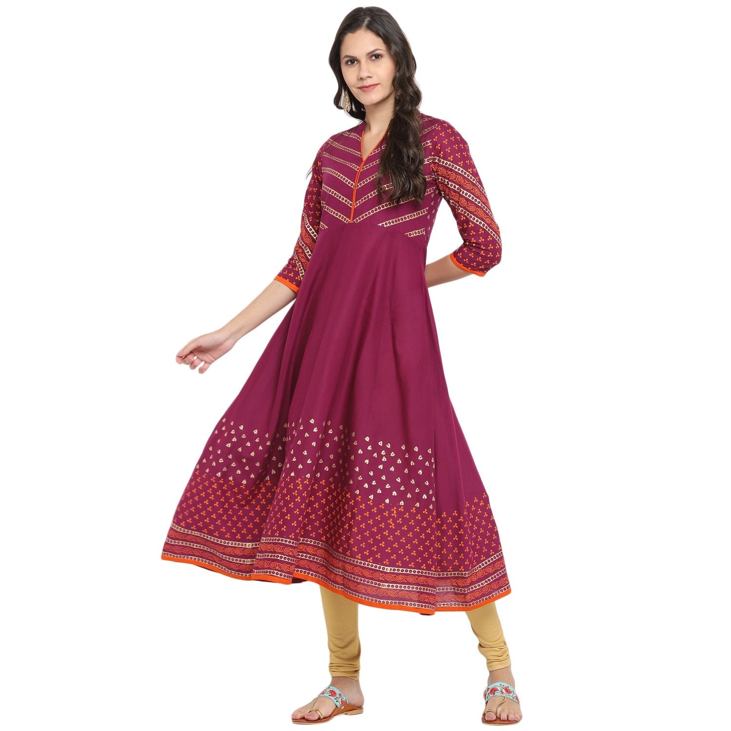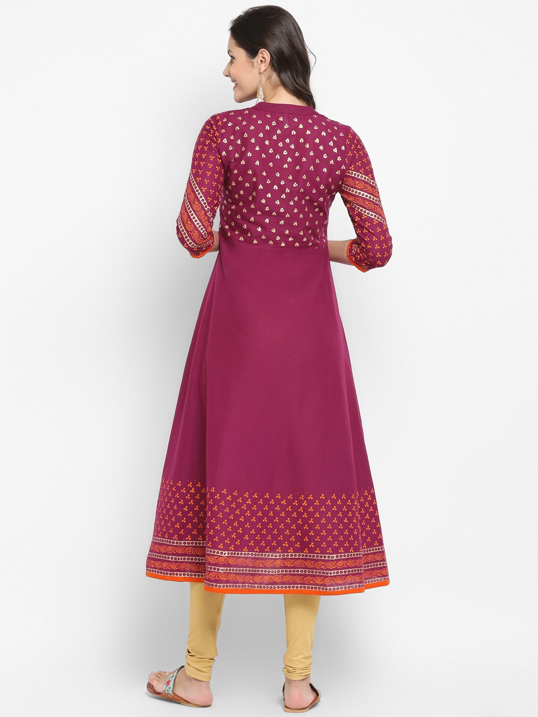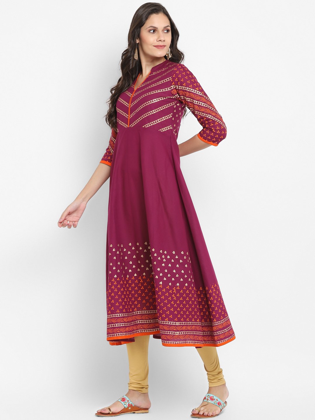 Women's Purple Cotton Printed Anarkali Kurti With Block Print (1 Pc)