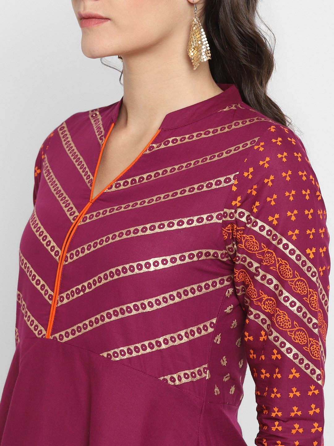 Purple Cotton Printed Anarkali Kurti With Block Print