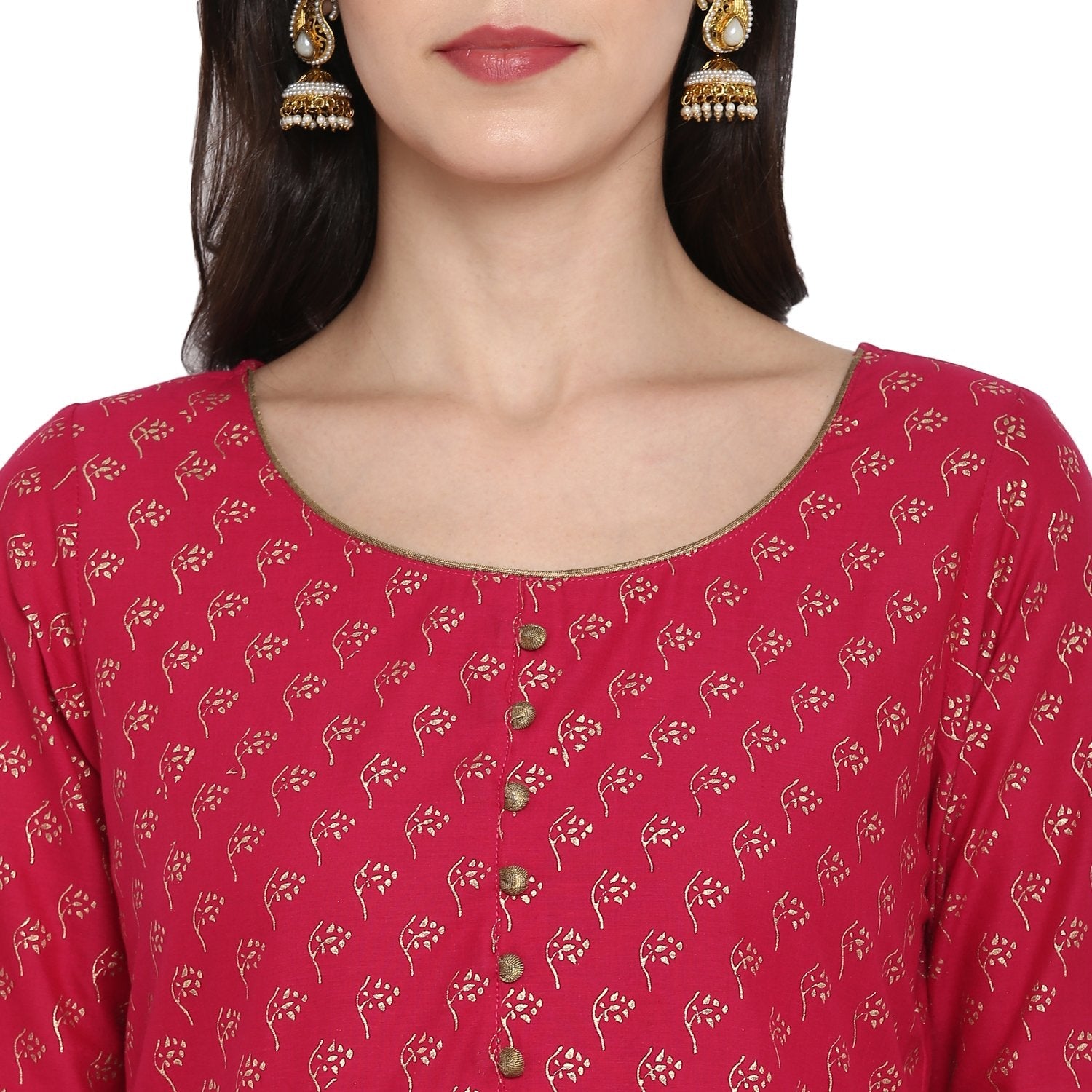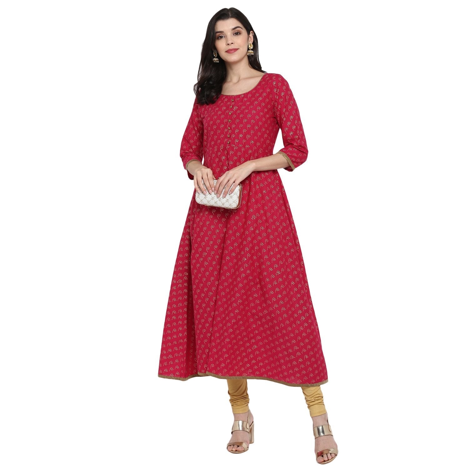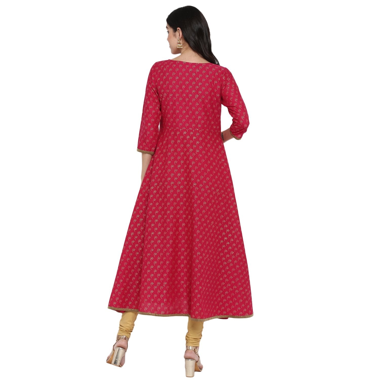 Women's Red Cotton Printed Anarkali Kurti With Block Print (1 Pc)
