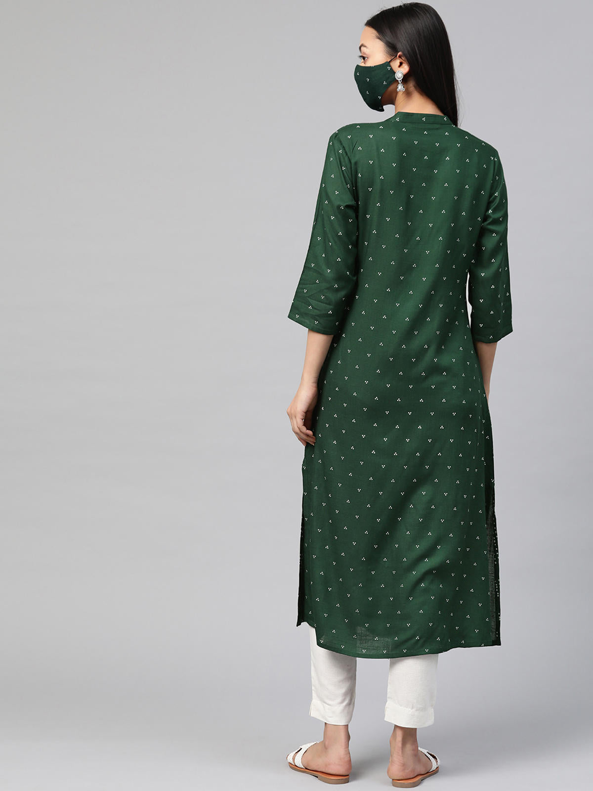 Women's Jade Green Rayon Slub Printed Kurta - Juniper