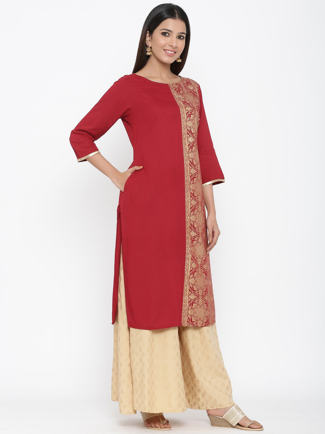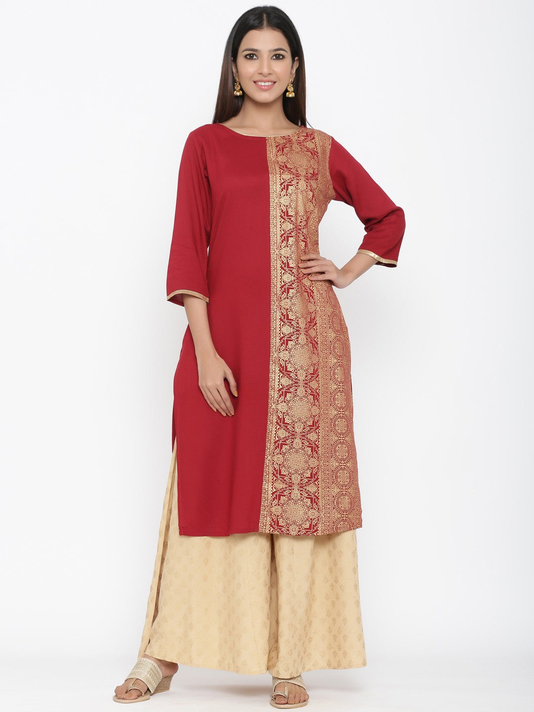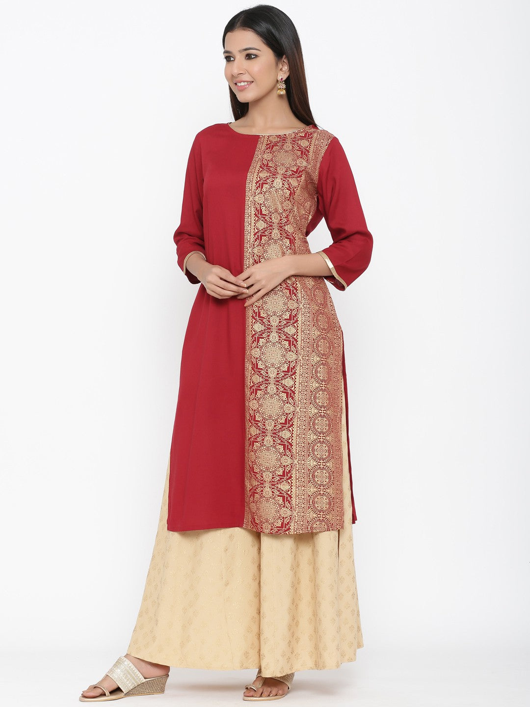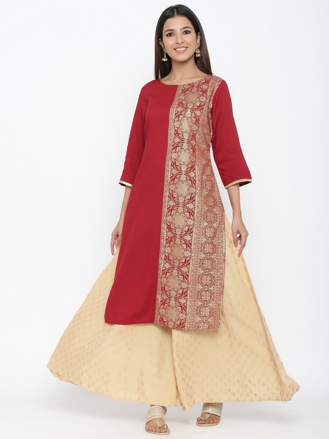 Juniper Maroon Rayon Printed Panelled Kurta