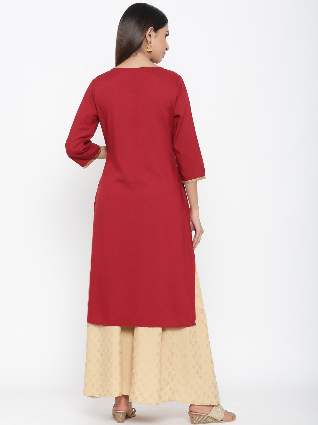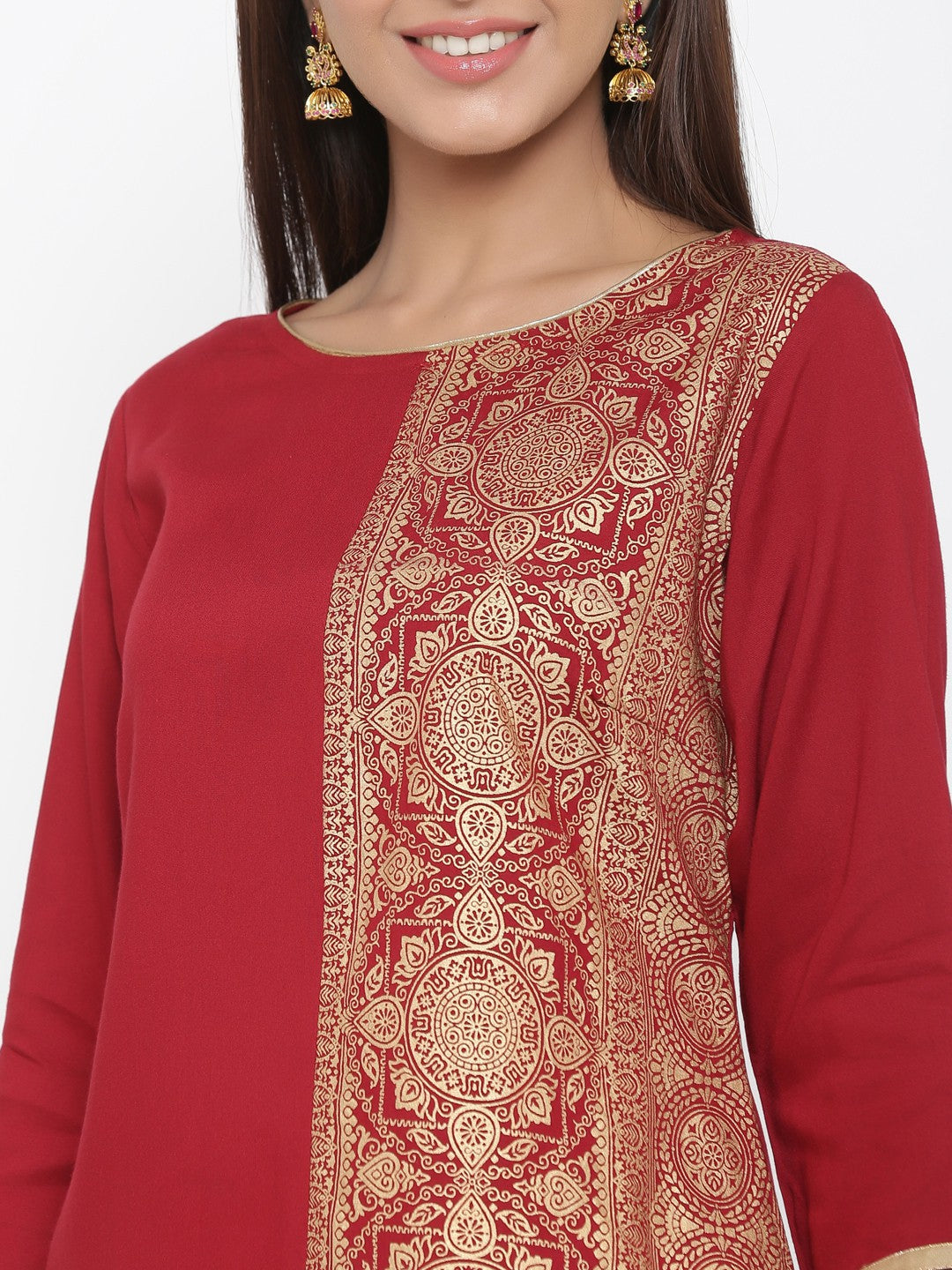 Top Details : Length :42 Inch Color :Maroon Fabric :Viscose Rayon Work/Pattern :Printed Neck Line :Boat Neck Shape :Straight