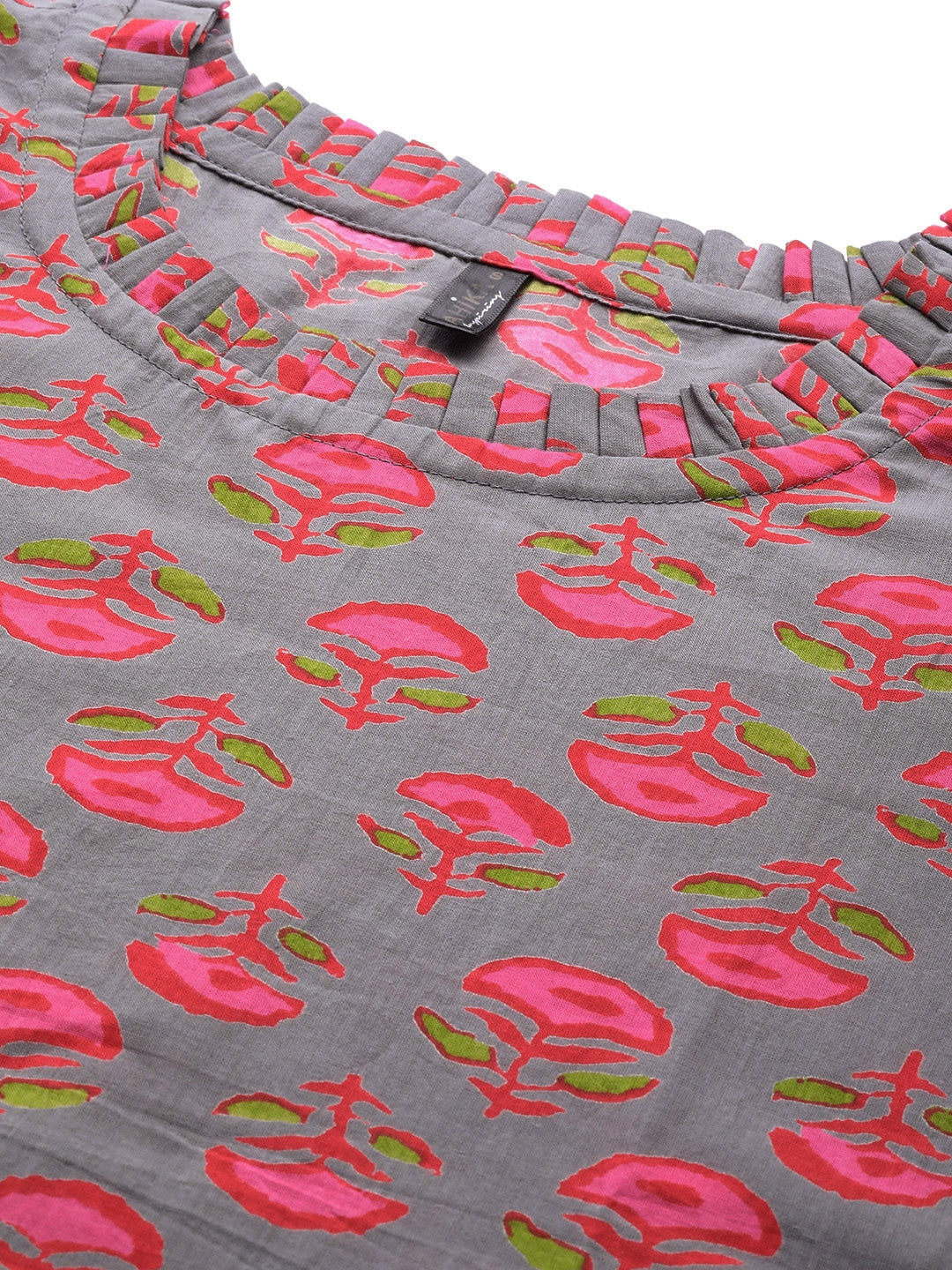 Pink Floral Anarkali suit set BY SARAS THE LABEL -3PC SET